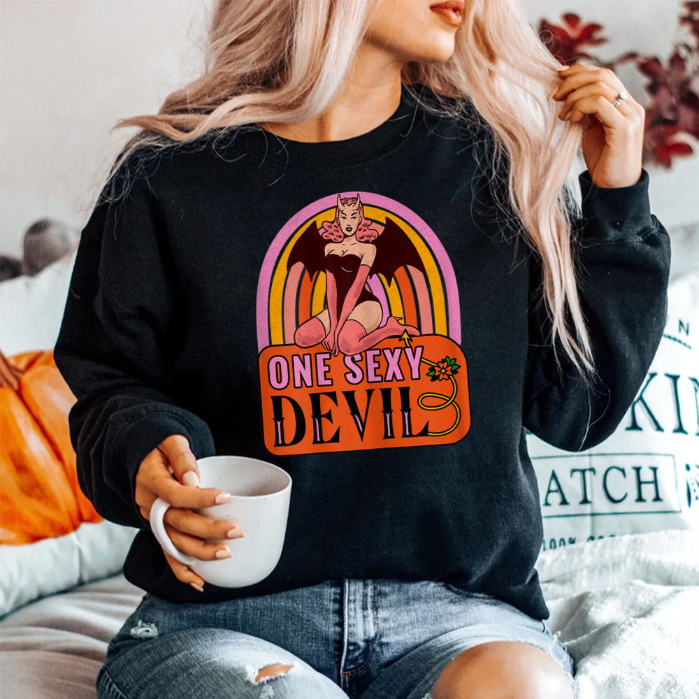 One Sexy Devil Woman Groovy Witch Halloween Shirt, hoodie, sweatshirt, long sleeve and ladies T-shirt