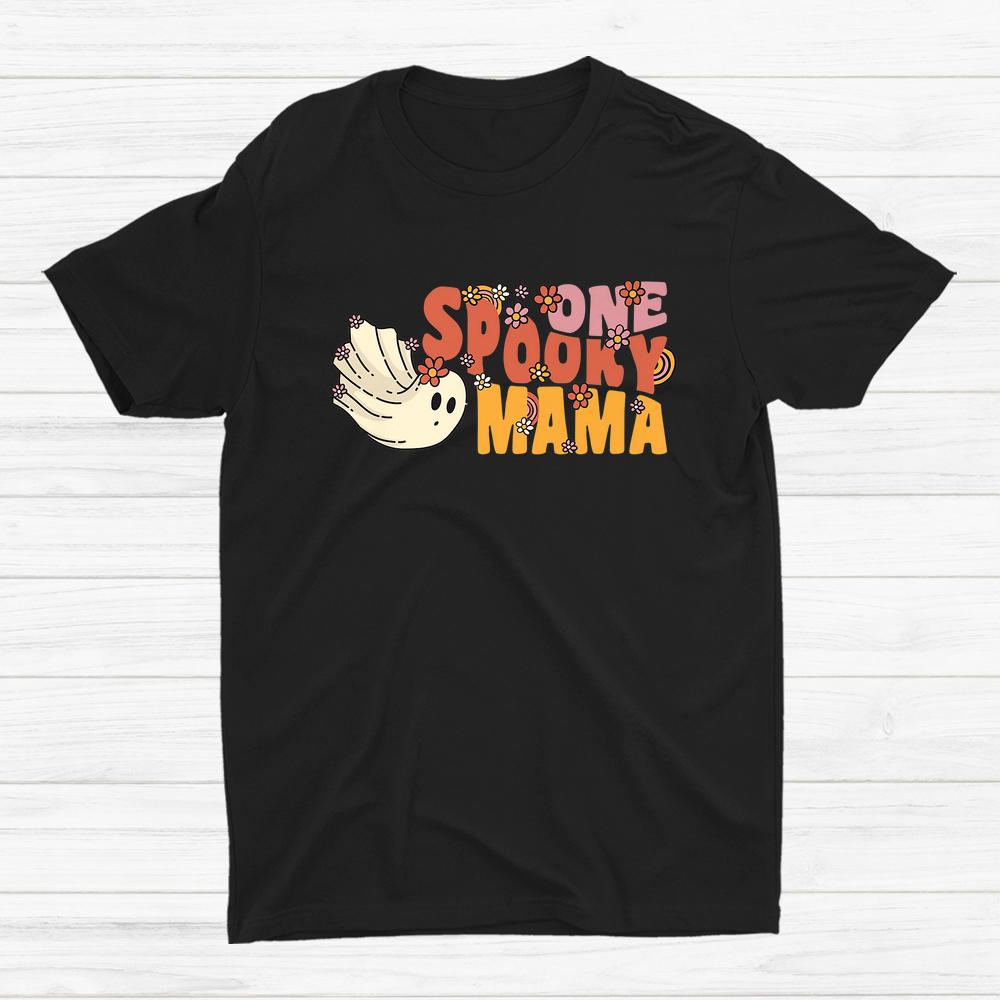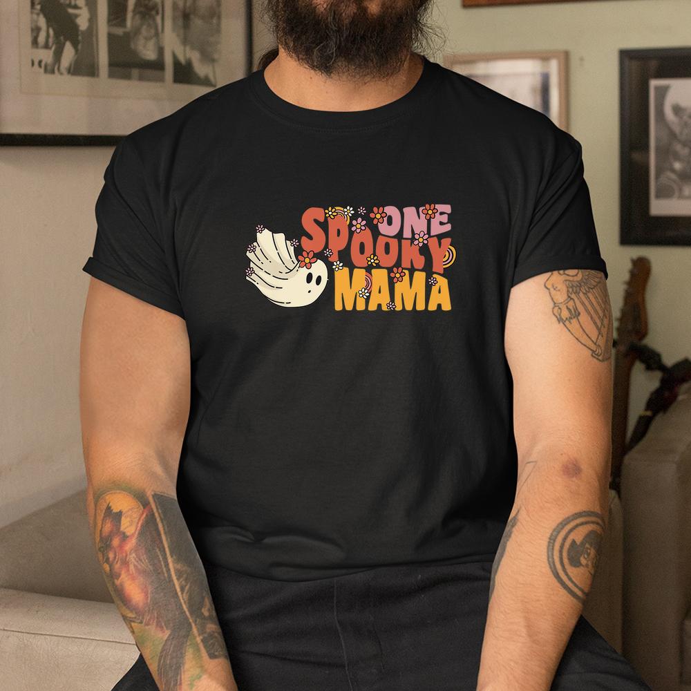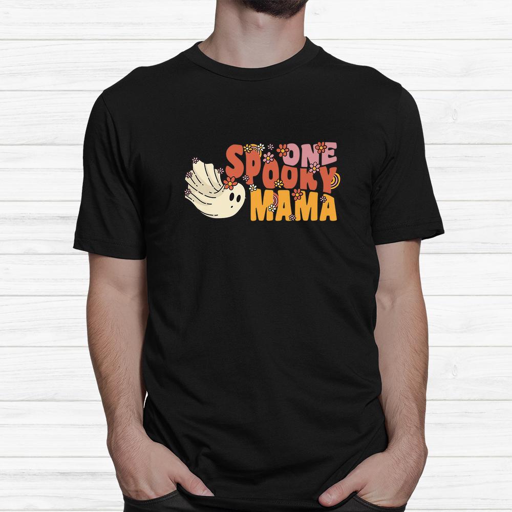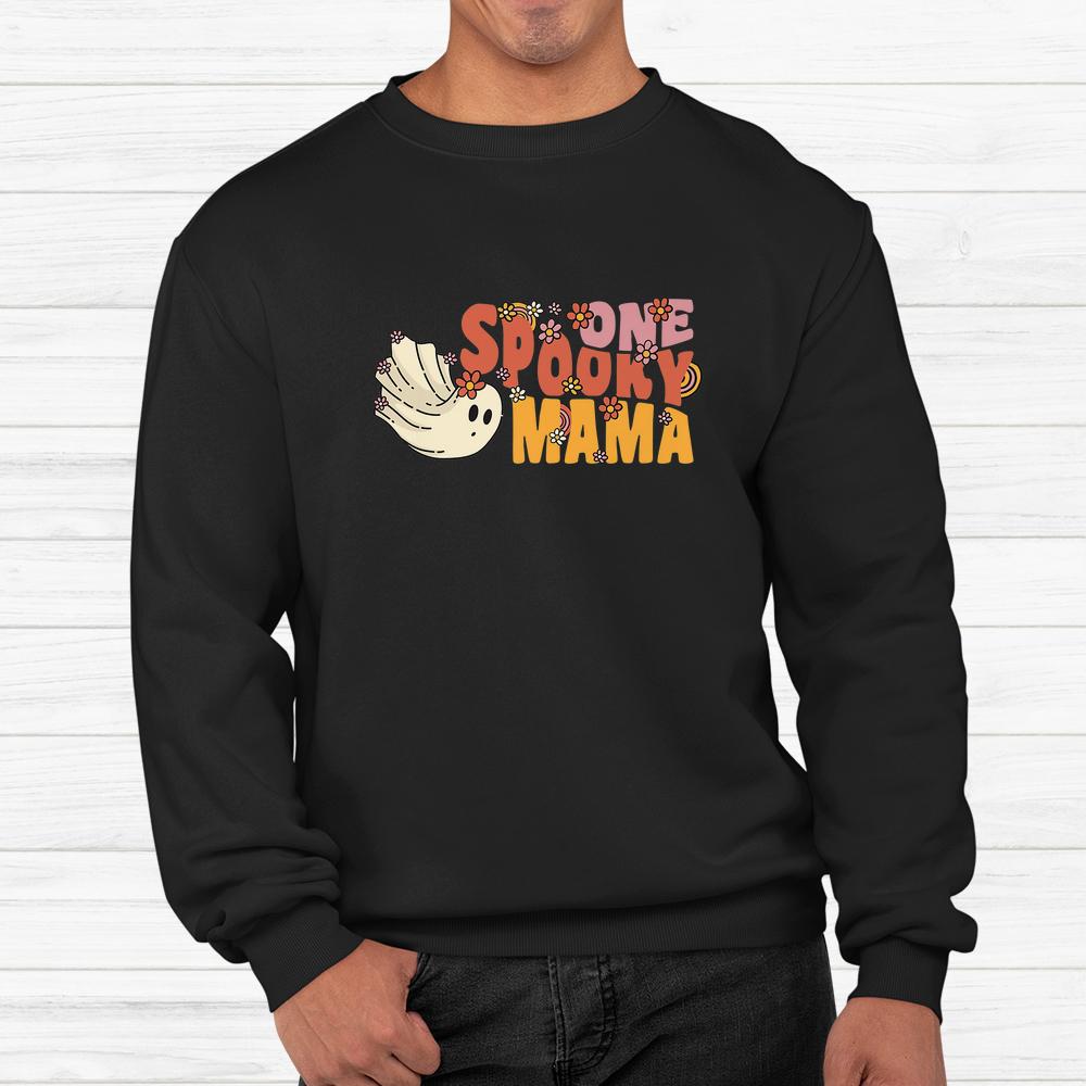 One Spooky Mama Groovy Ghost With Flowers Halloween Shirt, hoodie, sweatshirt, long sleeve and ladies T-shirt