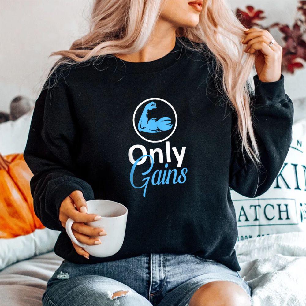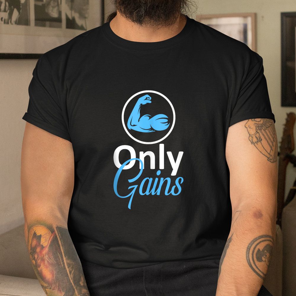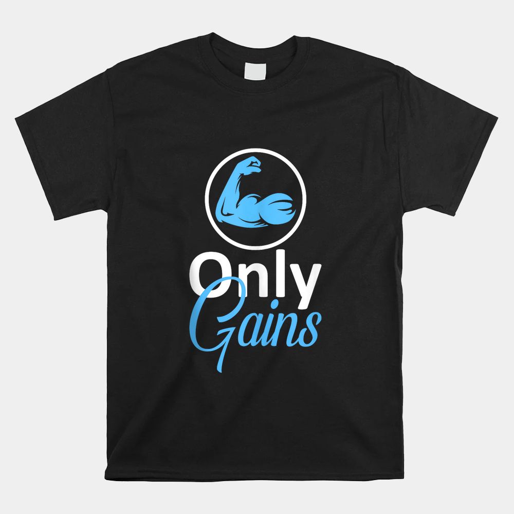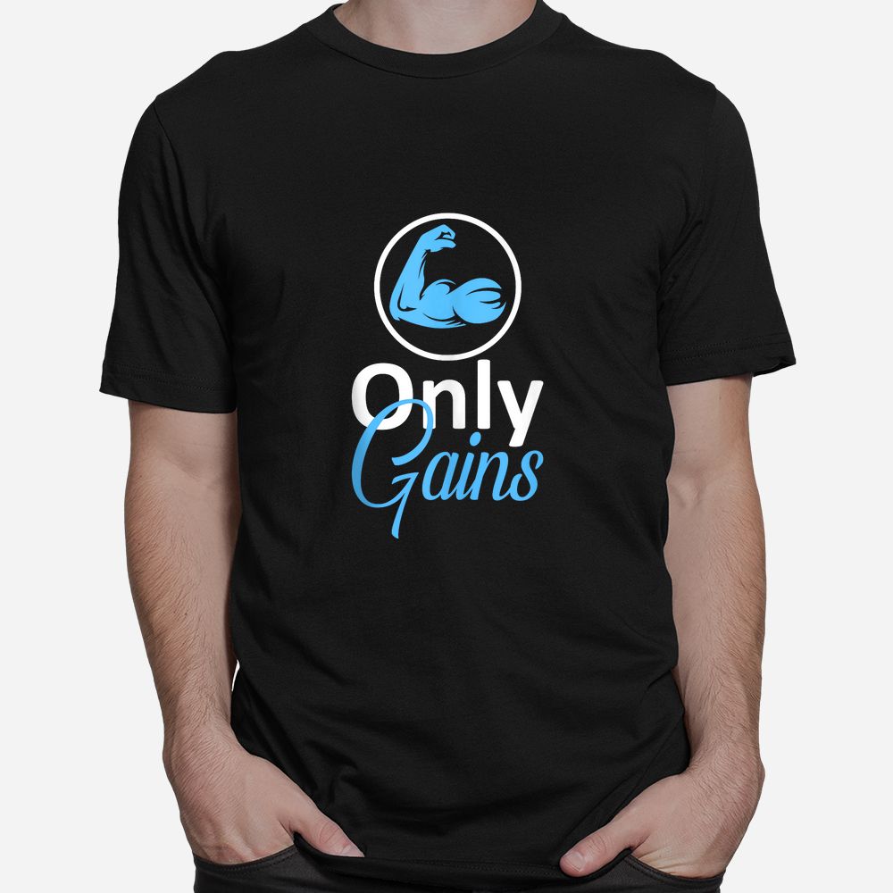 Only Gains Funny Gym Fitness Workout Bodybuilding Lifting Shirt