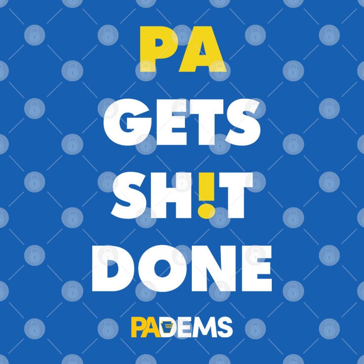 The phrase “Pa Gets Shit Done Padems” is associated with the Pennsylvania Democratic party (or “PA Dems”). The slogan reflects the party’s message of taking action and getting results, especially in politically challenging or pivotal times.