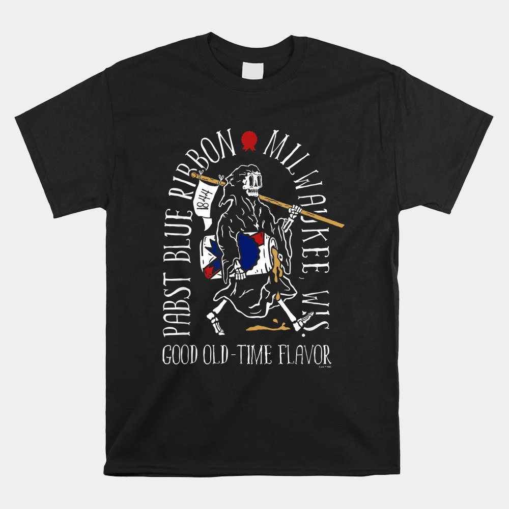 Pabst Blue Ribbon Beer Good Old-time Flavor Skeleton Shirt