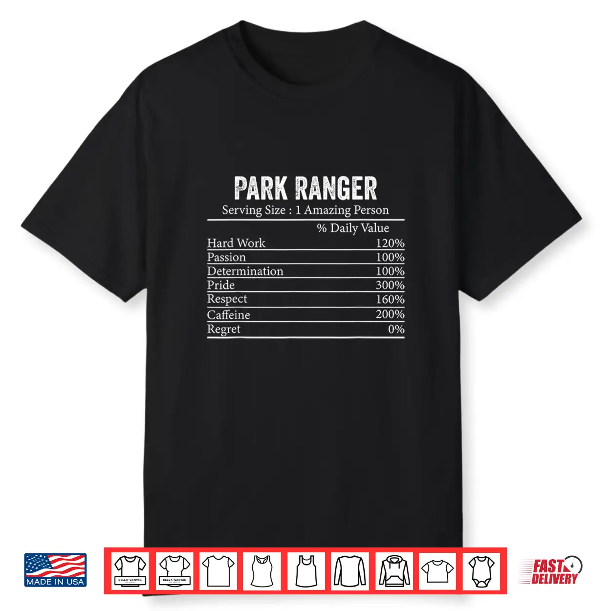 Park Ranger Nutrition Facts Professional Information Graphic Shirt