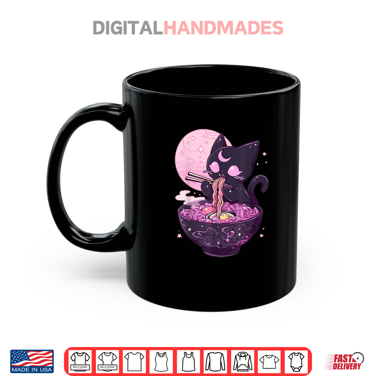 Pastel Goth Aesthetic Kawaii Creepy Cat Eating Ramen Noodles Shirt