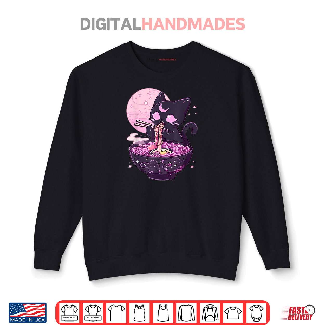 Pastel Goth Aesthetic, Kawaii Creepy Cat, Eating Ramen Noodles Shirt, Pastel Goth Shirt, Kawaii Cat, Creepy Cat, Ramen Shirt, Aesthetic Fashion, Cute Shirt