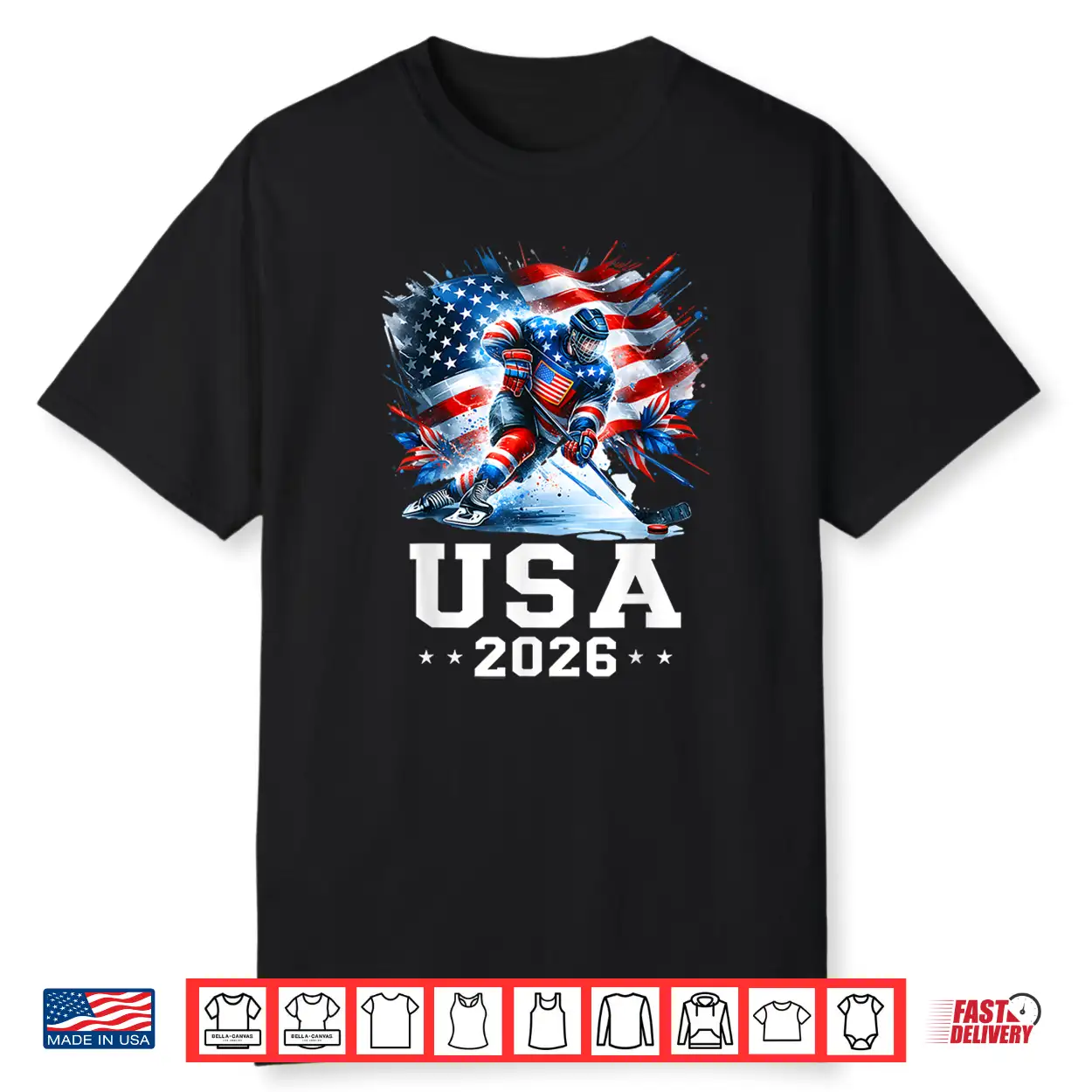 Patriotic American Flag Ice Hockey Gift Hockey Player Fan Shirt