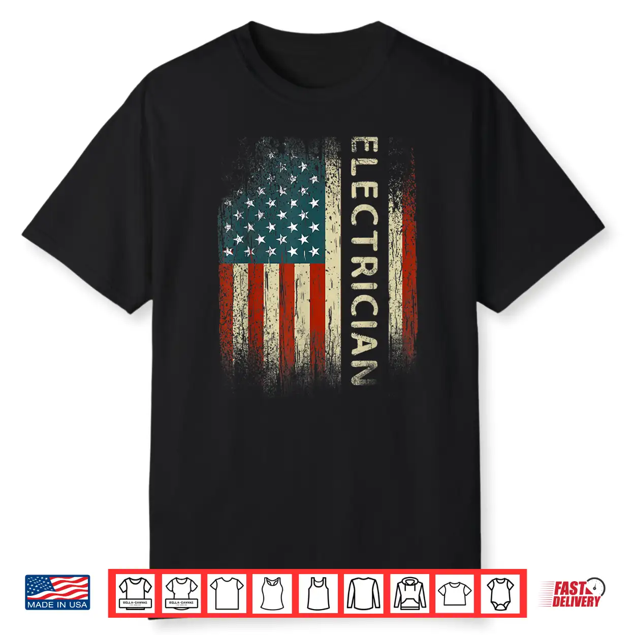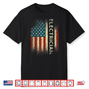 Patriotic Electrician Gift American Usa Flag Funny Lineman Shirt