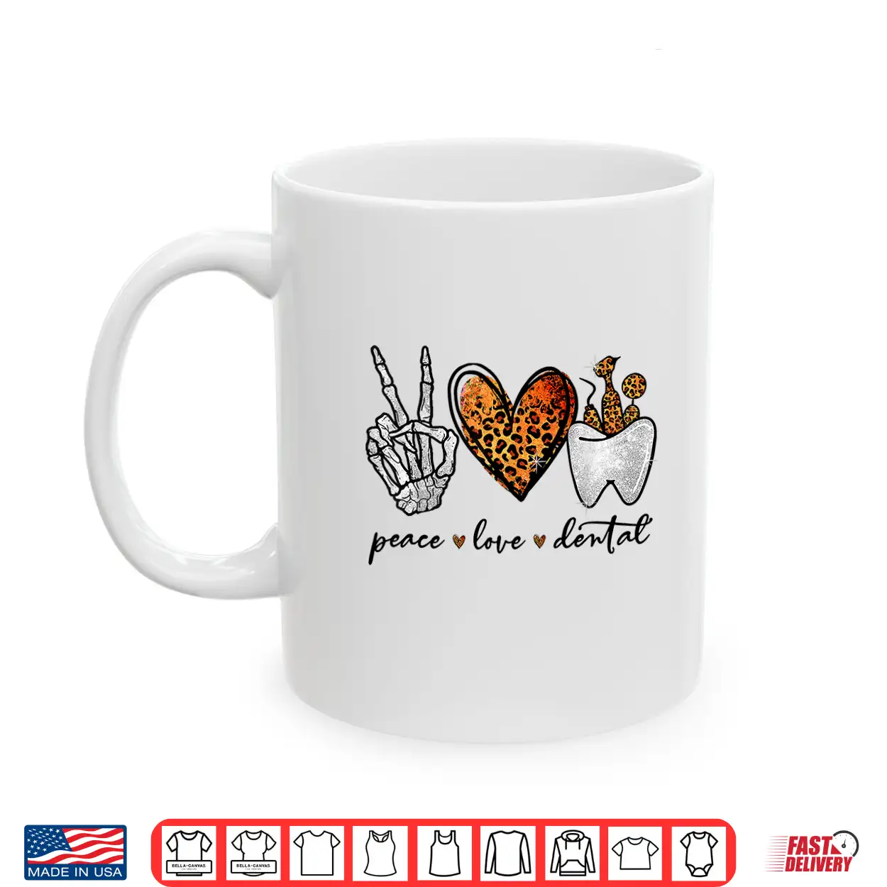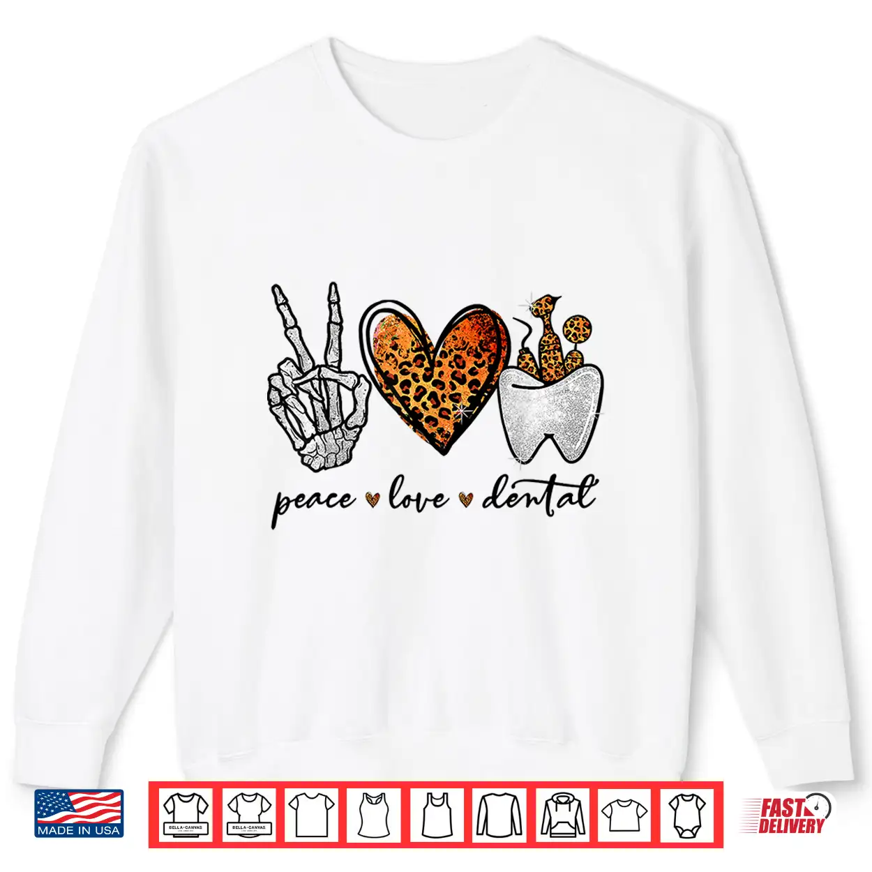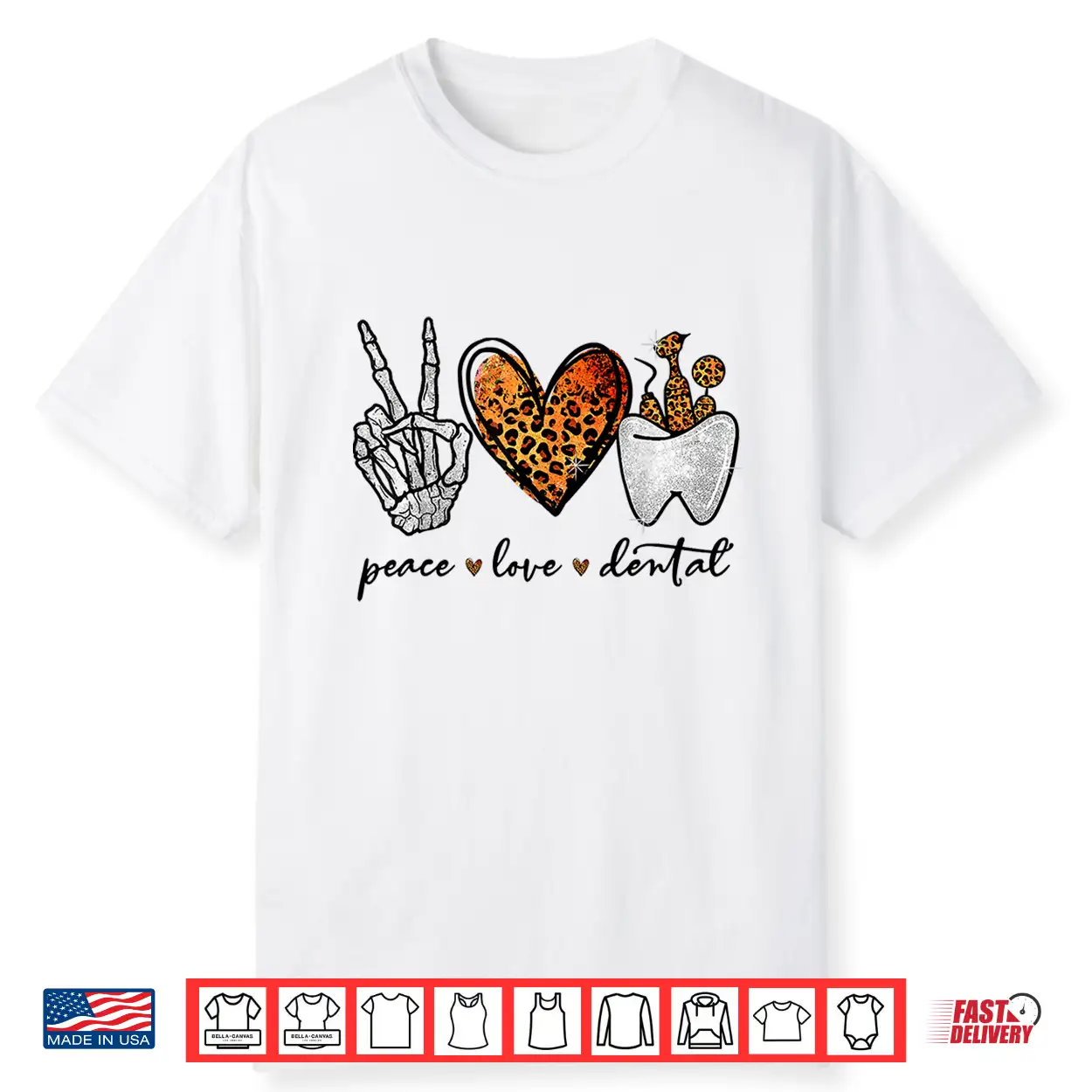 Peace Love Dental Leopard Heart Teeth Halloween Dentist Shirt