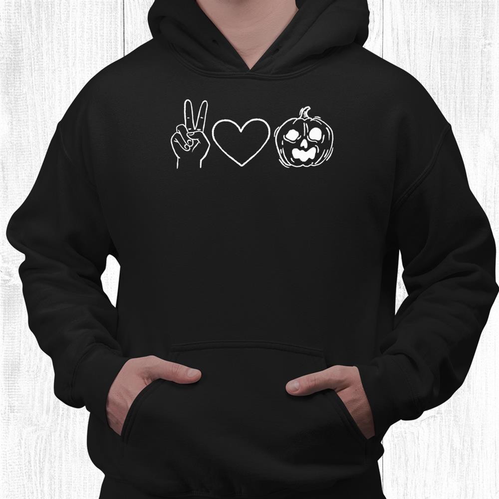 Buy Peace Love Pumpkin Halloween Cute Women Boo Shirt from DigitalHandmades. Unique designs on men’s t-shirts and women’s t-shirts are funny, vintage, and retro. Whether you’re looking for the ideal gift for a birthday, anniversary, or any special occasion, this shirt is sure to impress and bring joy to the recipient.