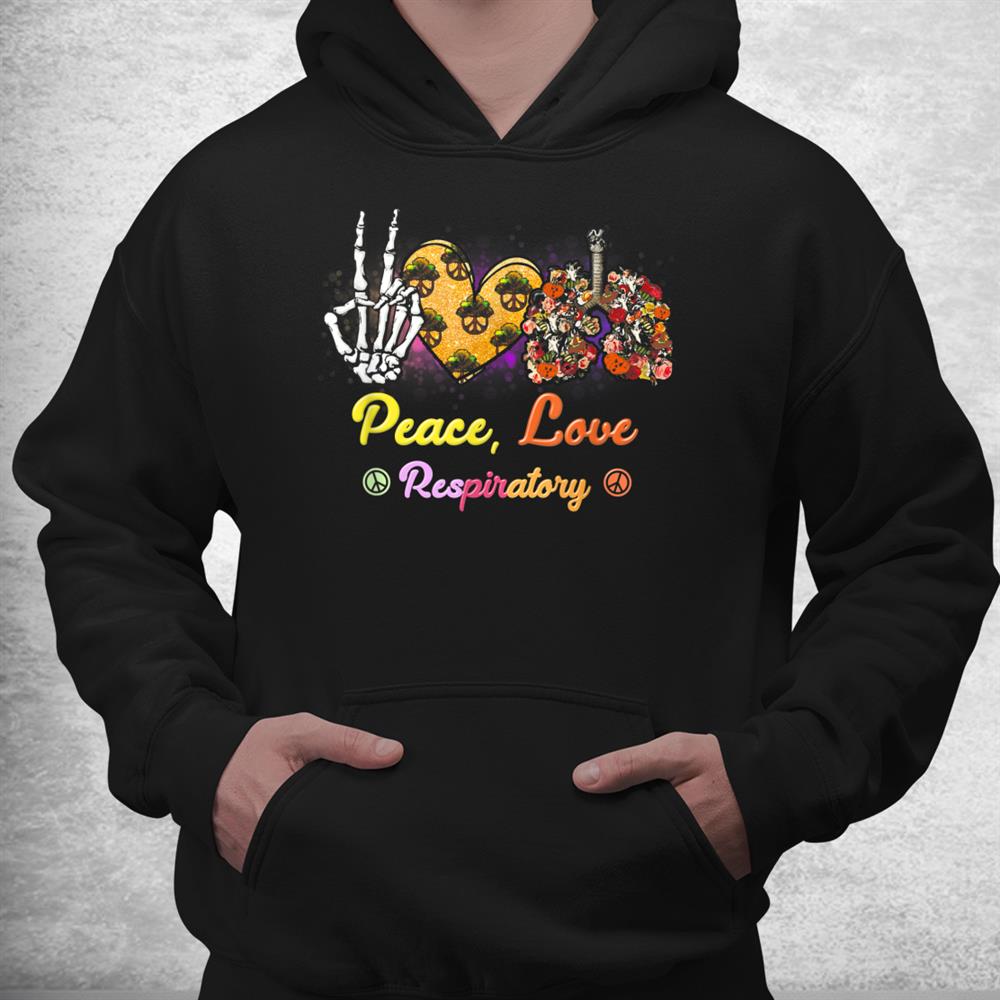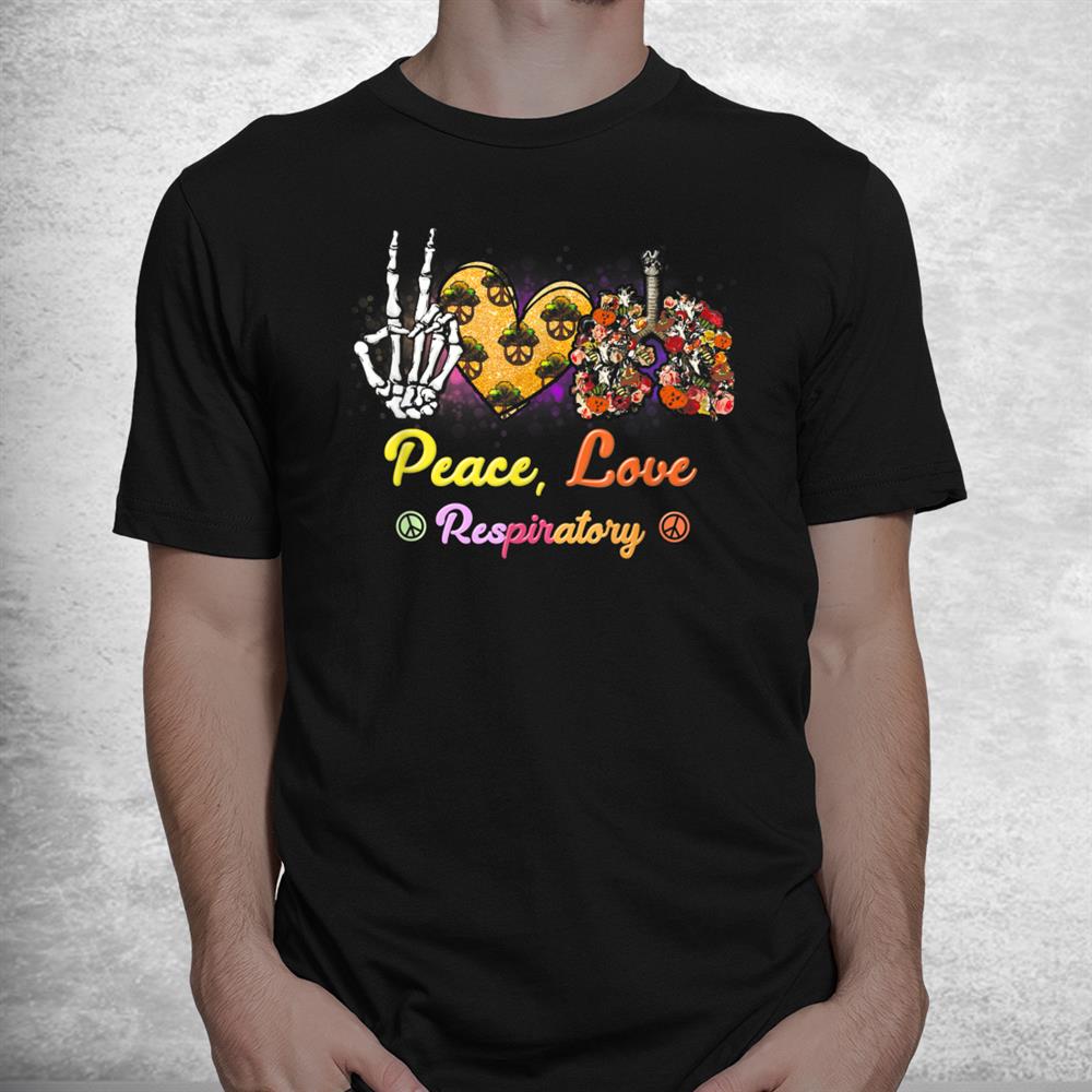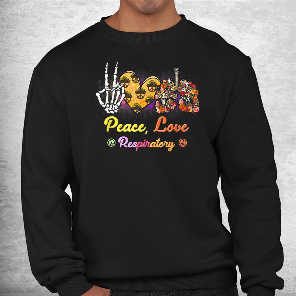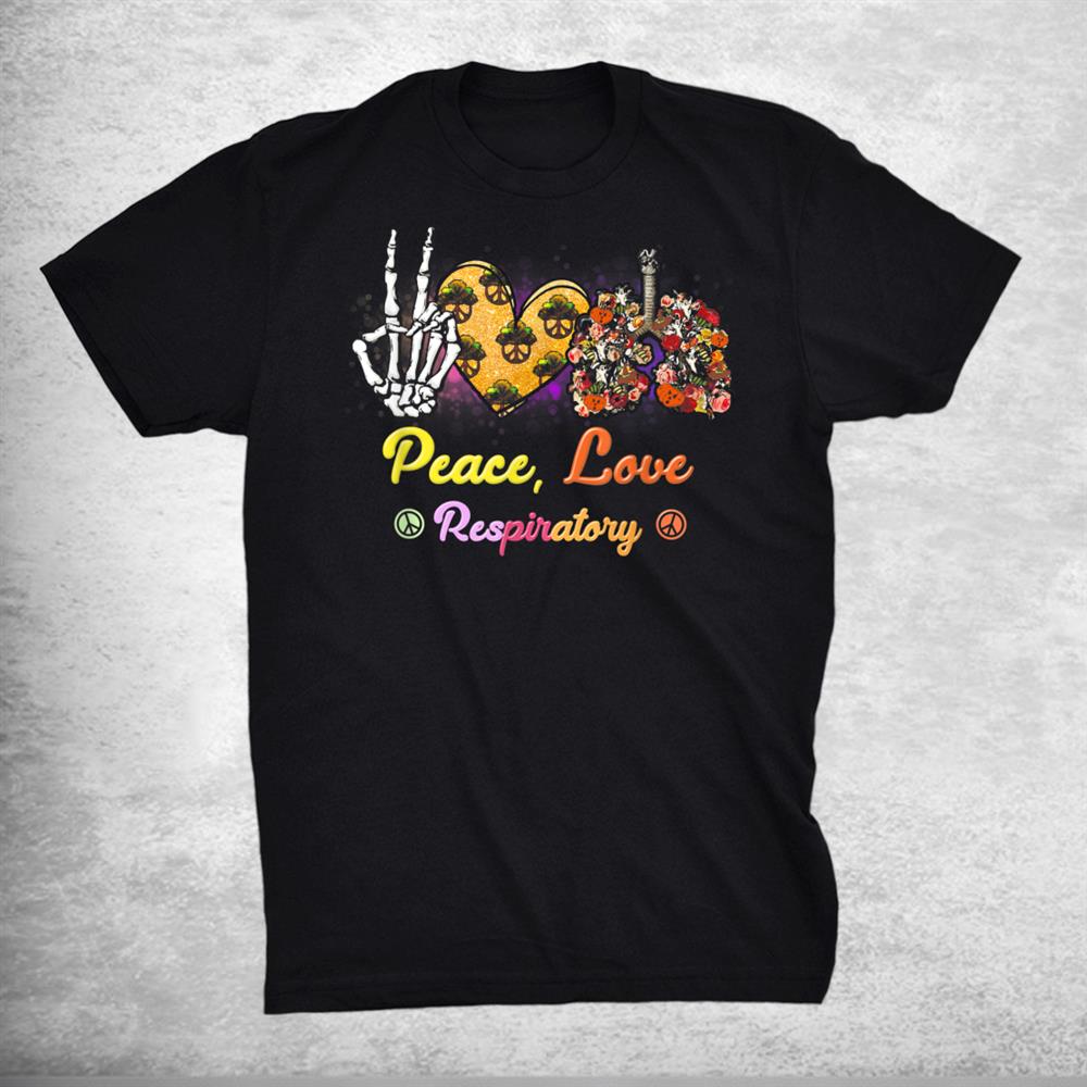 Peace Love Respiratory Therapist Halloween Skeleton Shirt, hoodie, sweatshirt, long sleeve and ladies T-shirt