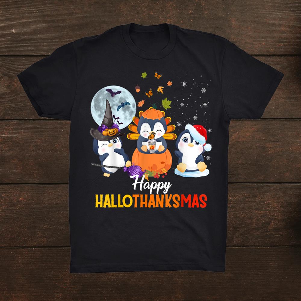 Penguin Halloween And Happy Hallothanksmas Merry Christmas Shirt, hoodie, sweatshirt, long sleeve and ladies T-shirt