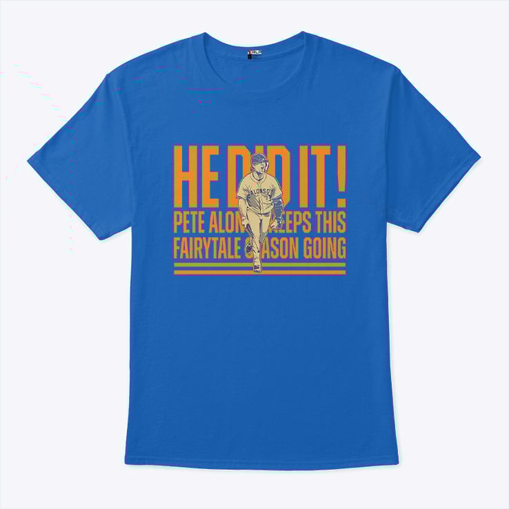 Have a look at the detailed information about the Pete Alonso He Did It Keeps This Fairytale Season Going T Shirt below!