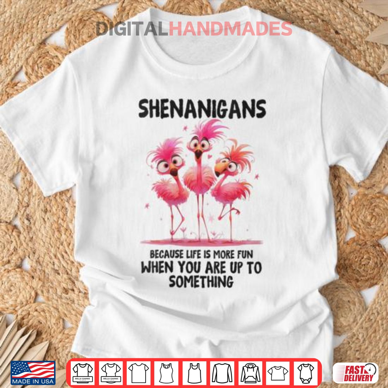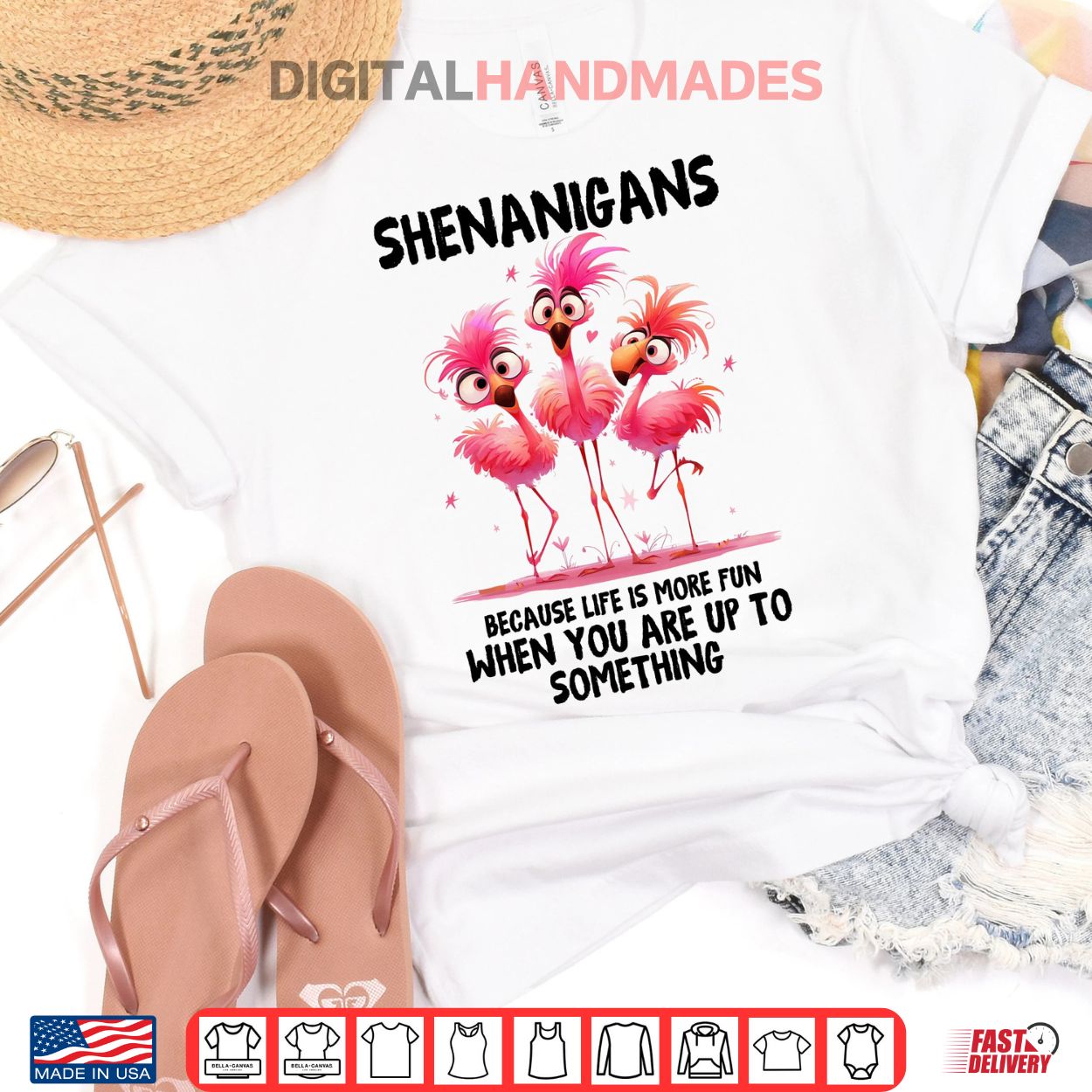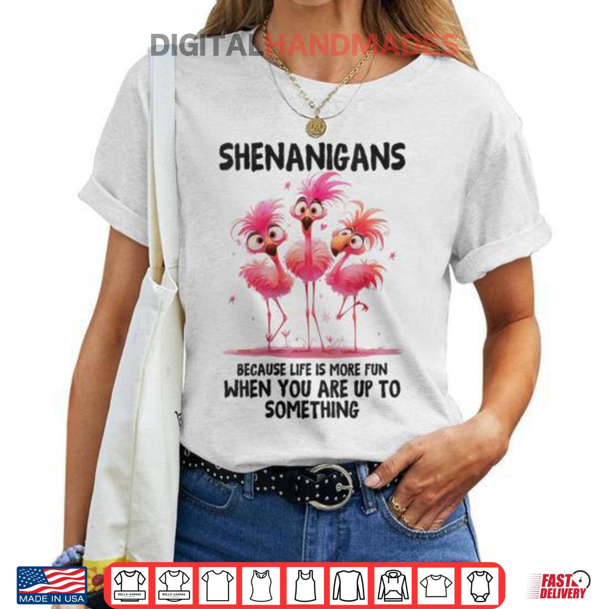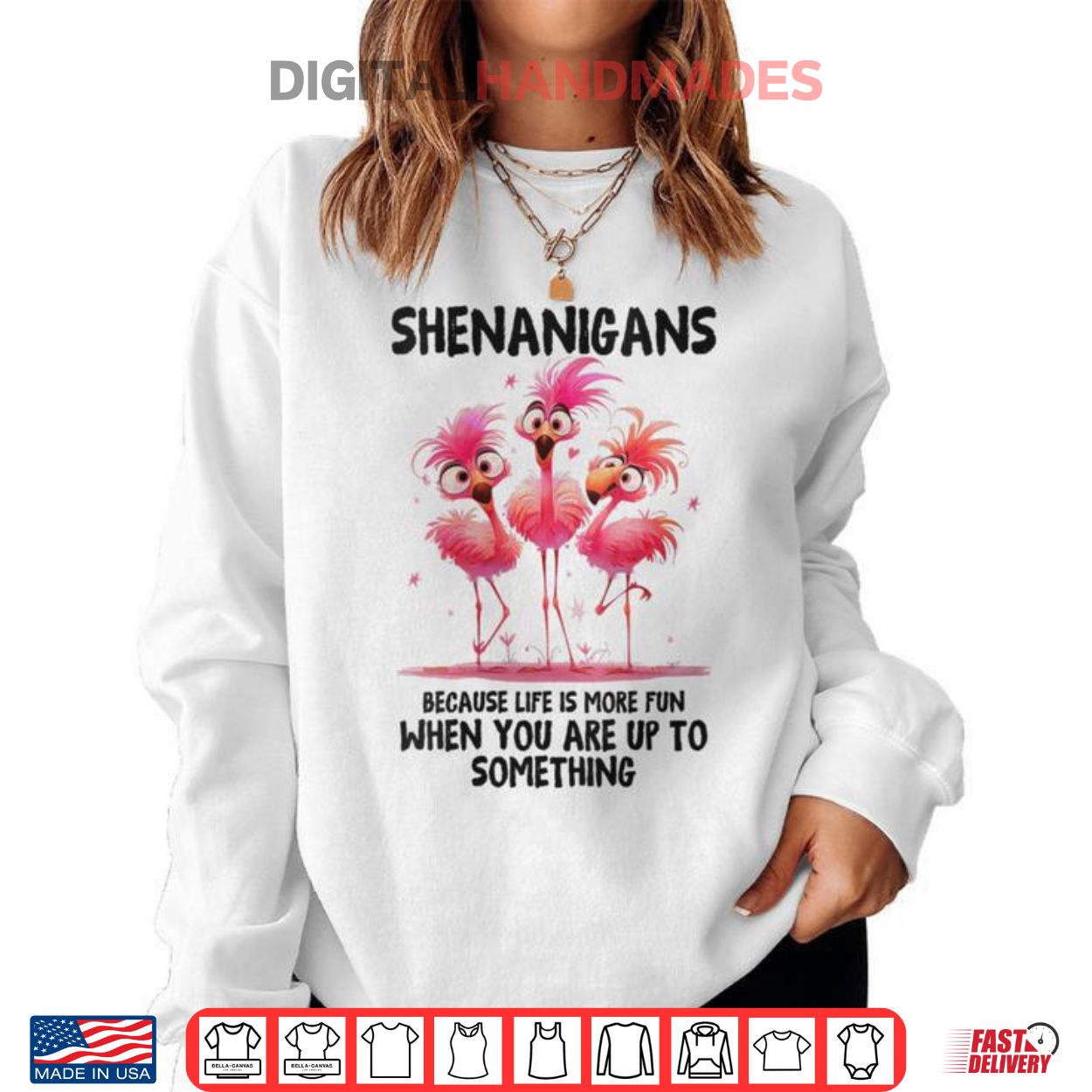 Pink Flamigo Shenanigans Because Life Is More Fun When You Are Up To Something Shirt