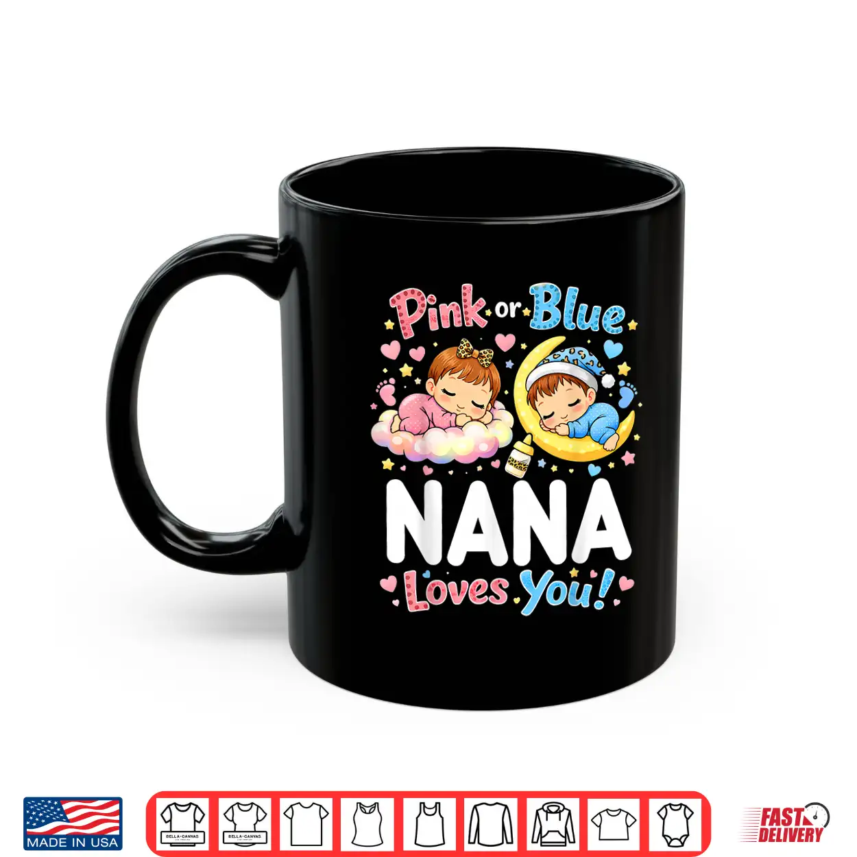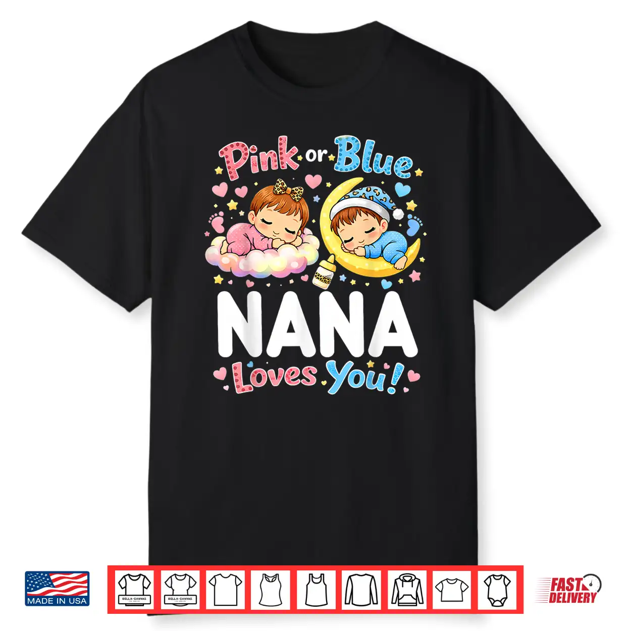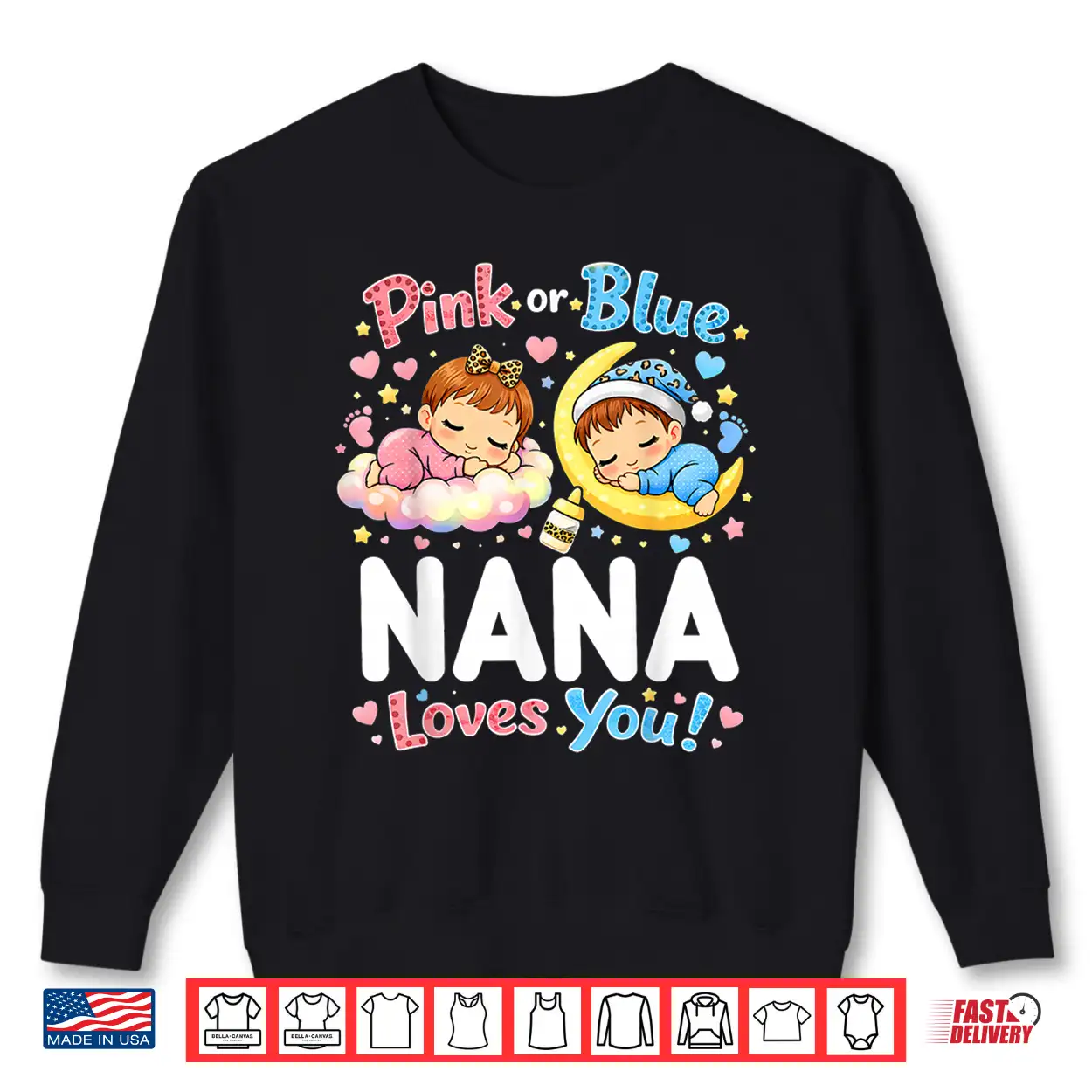 Pink Or Blue Nana Loves You Baby Gender Reveal Leopard Shirt