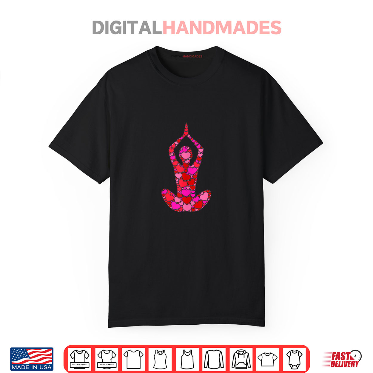 Pink Red Heart Valentines Day Gift Zen Meditation Pose Yoga Shirt