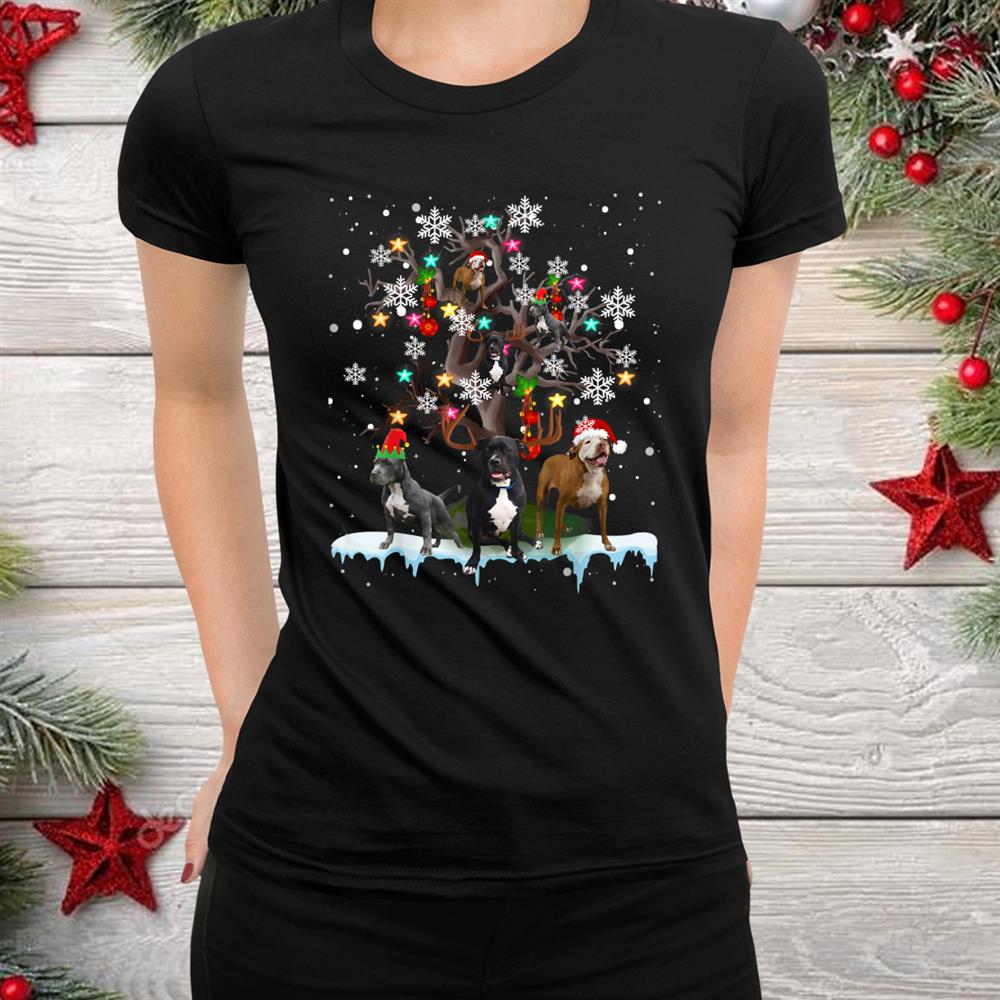 Pitbull Dog On Tree Santa Lover Christmas Shirt, hoodie, sweatshirt, long sleeve and ladies T-shirt