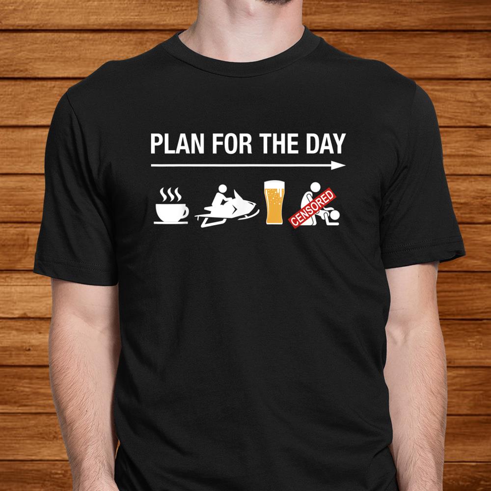 Plan For The Day Adult Humor Coffee Ride Beer Snowmobile Shirt