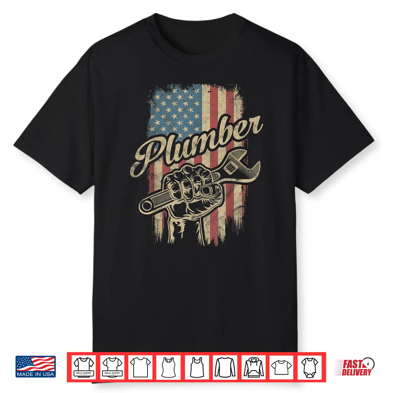 Plumber American Flag Plumbing Pipe Wrench Usa Patriotic Shirt