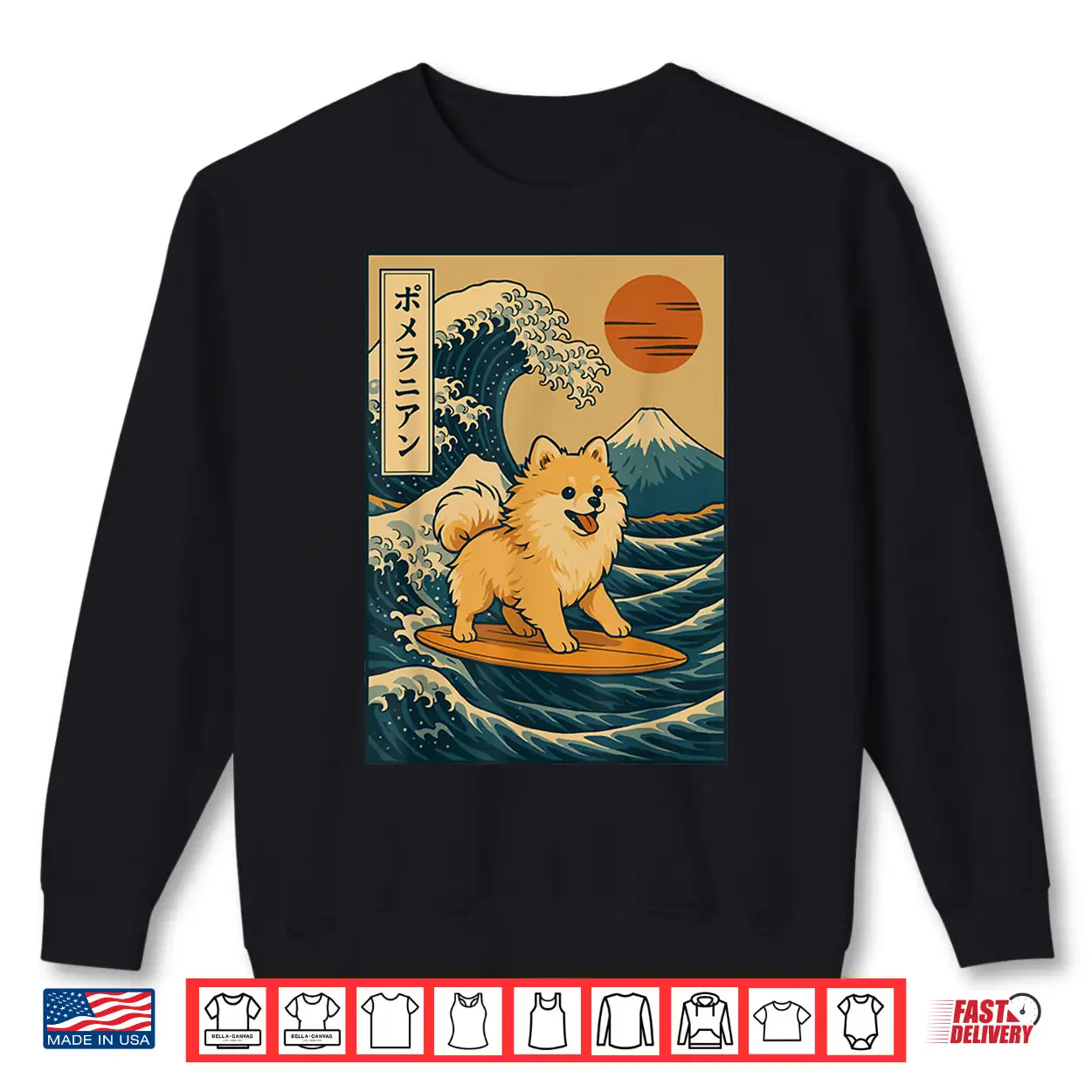Pomeranian Surfing Japanese Wave Shirt