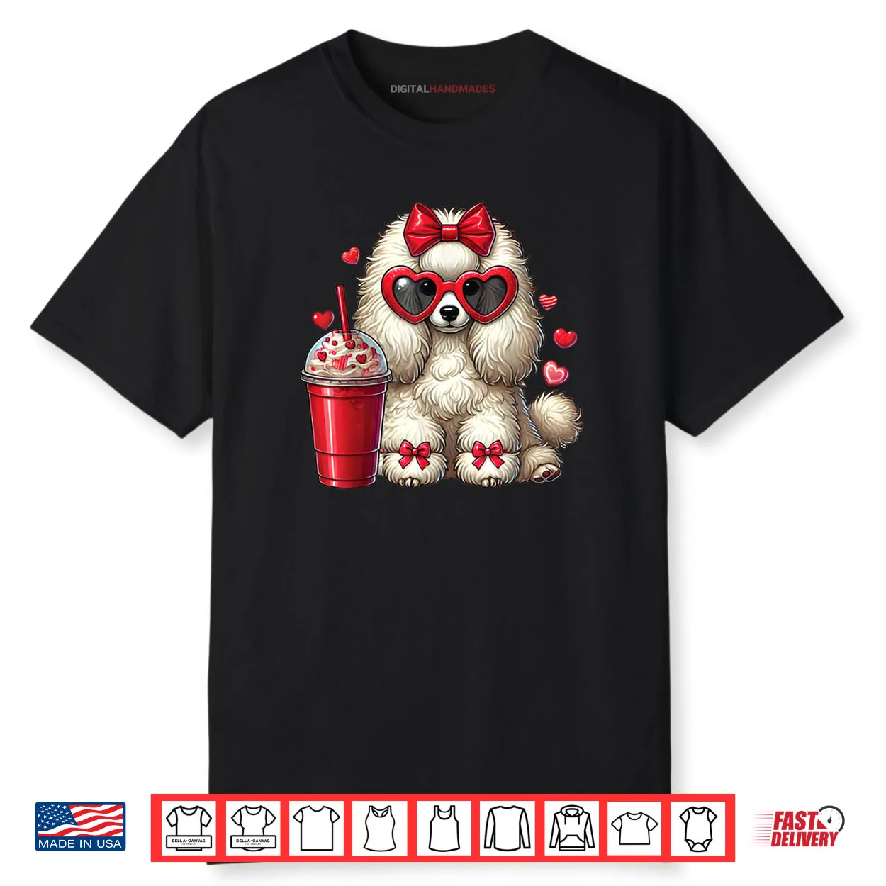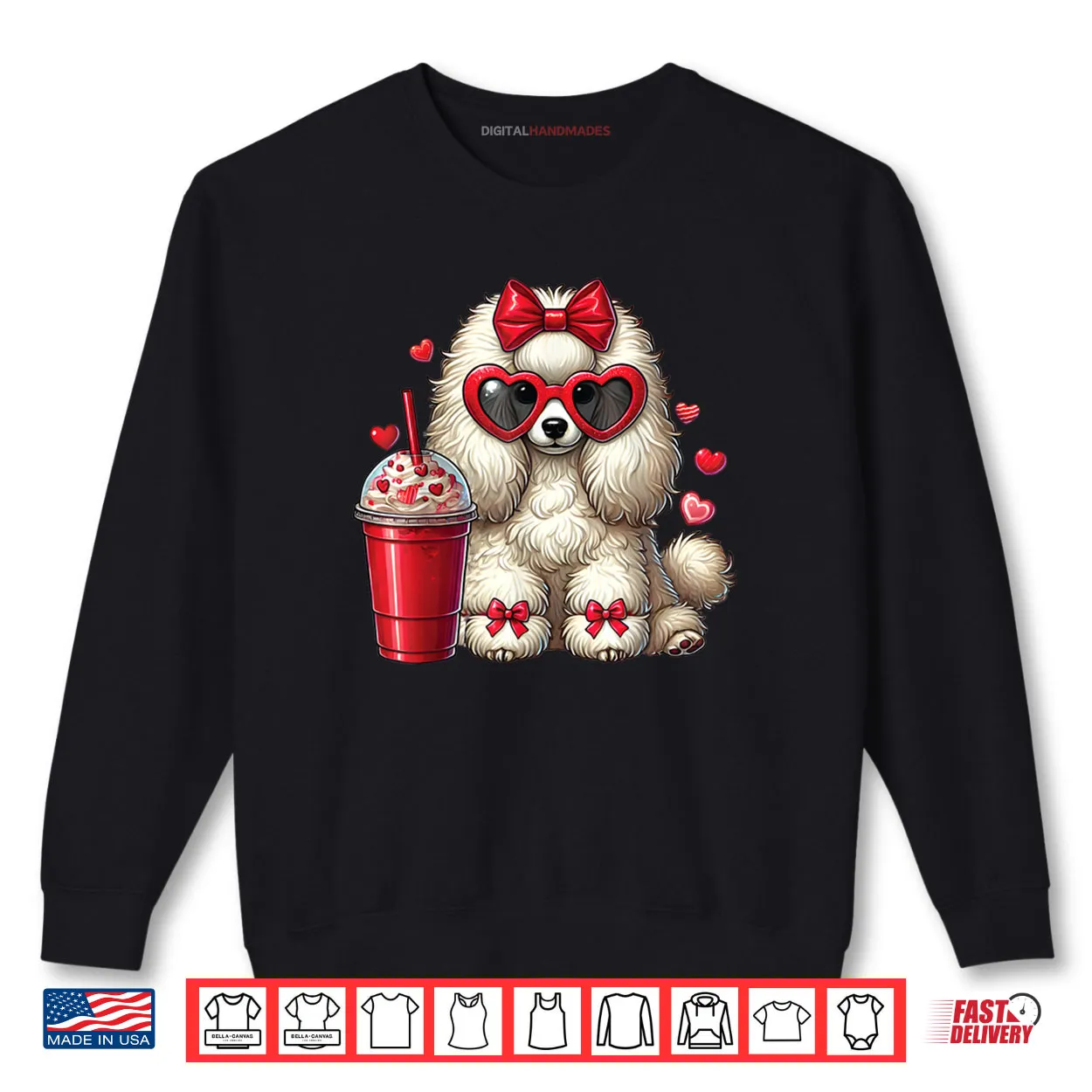 Poodle Dog Drinking Coffee Valentine’s Day Bow Dog Lovers Shirt