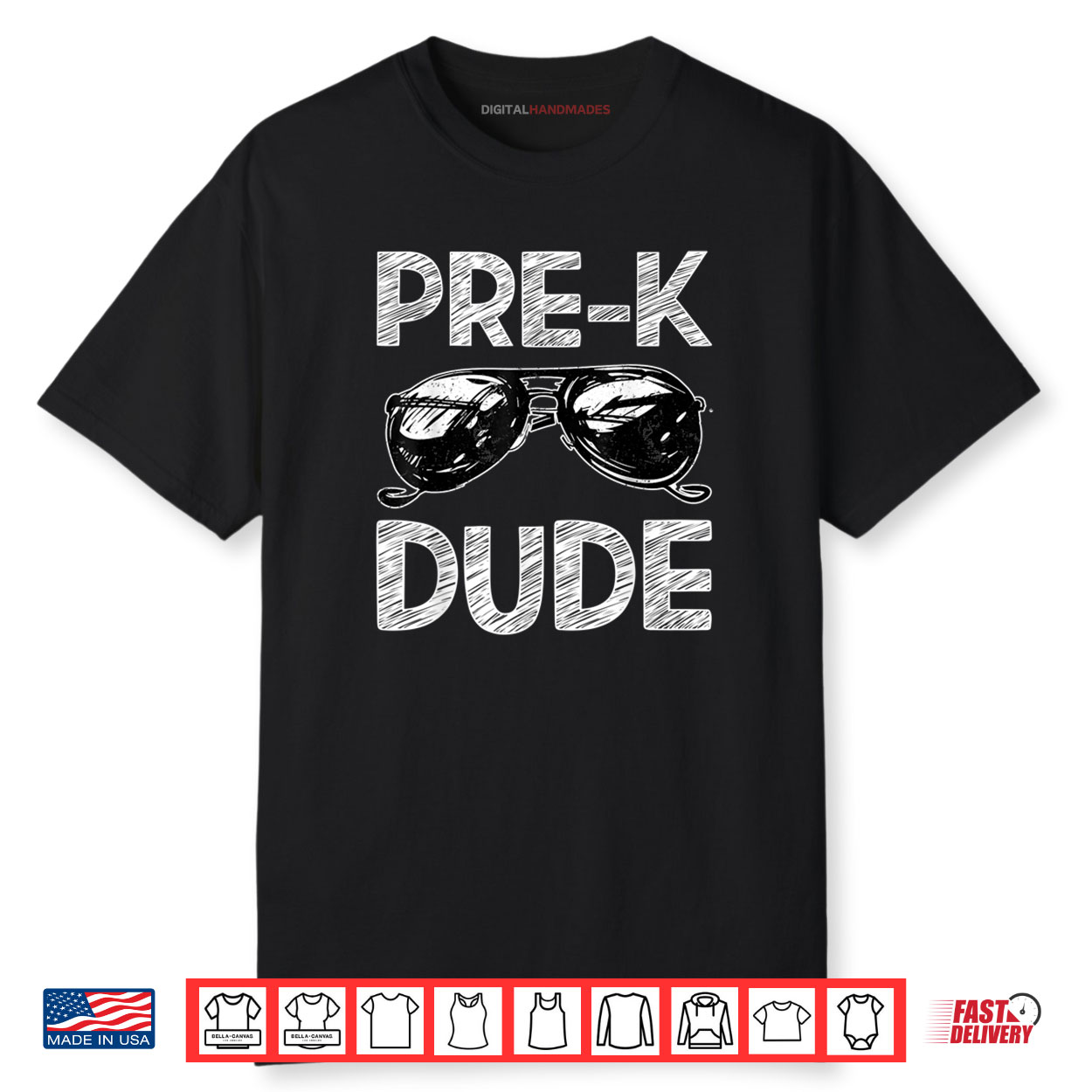 Pre K Dude Sunglasses Back To School Shirt, Pre K Dude Back To School Sunglasses Shirt, Funny Preschool Boy With Shades Tee Shirt, First Day Of Pre K Cool Kid Gift Shirt, Awesome Little Dude Starting School Shirt, Toddler Boy Fashion For School Style Shirt, Pre Kindergarten Here I Come Fun Shirt, Cool And Confident Pre K Student Shirt, My First Day Of Preschool Dude Shirt, School Is Cool For Little Dudes Shirt