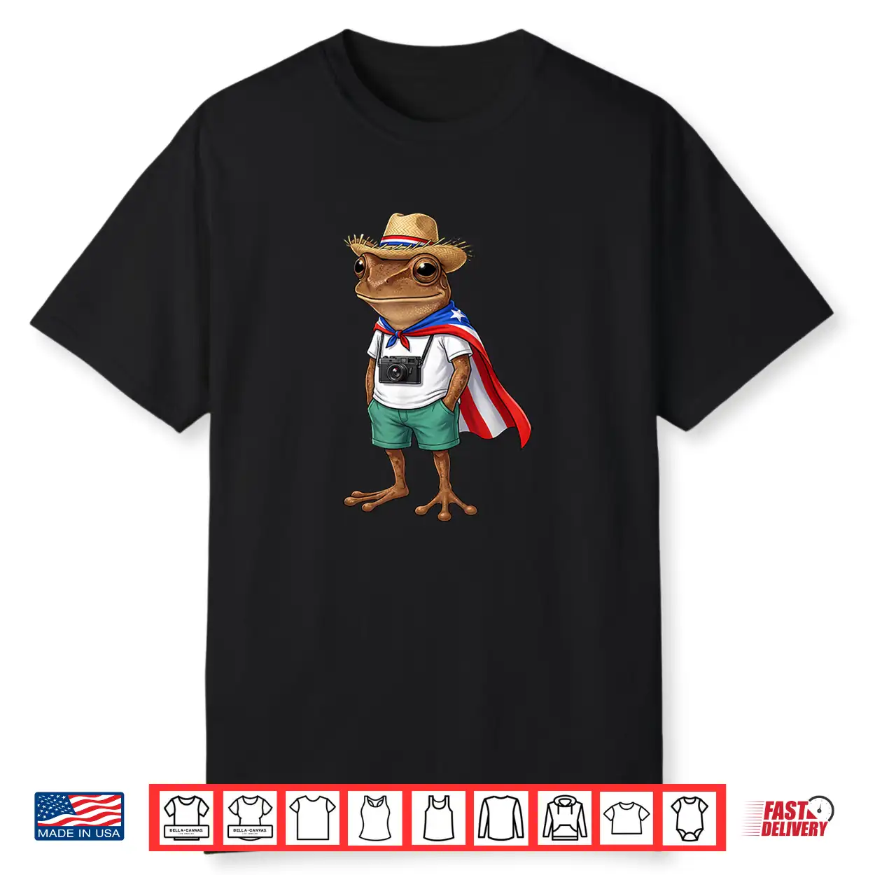 Puerto Rico Coqui Frog Boricua Flag Cape Pava Hat Shirt