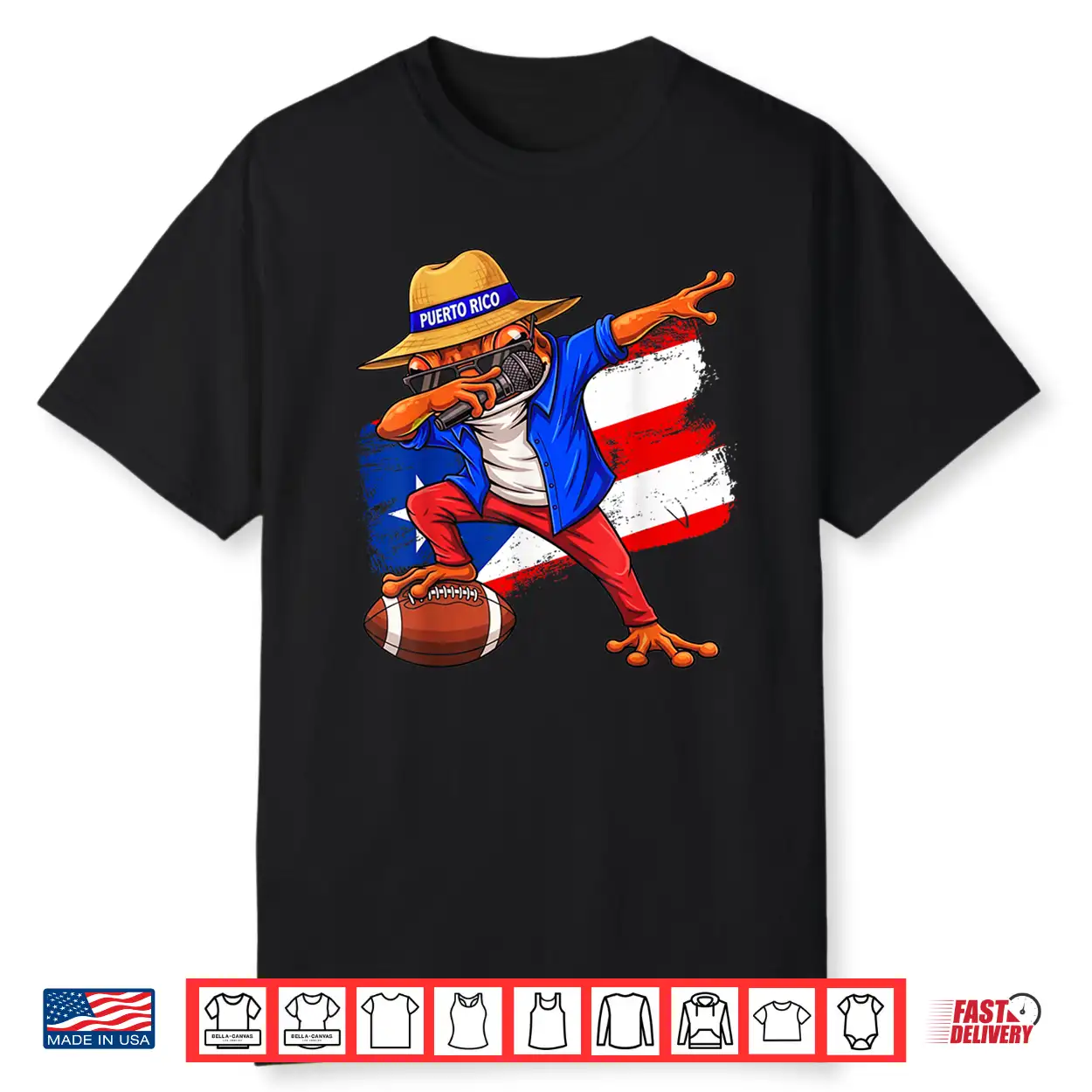 Puerto Rico Coqui Frog Dabbing Football Boricua Flag Funny Shirt
