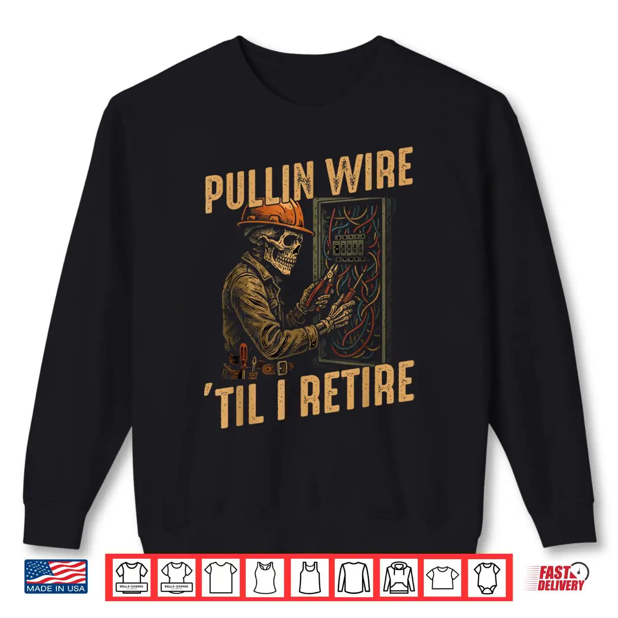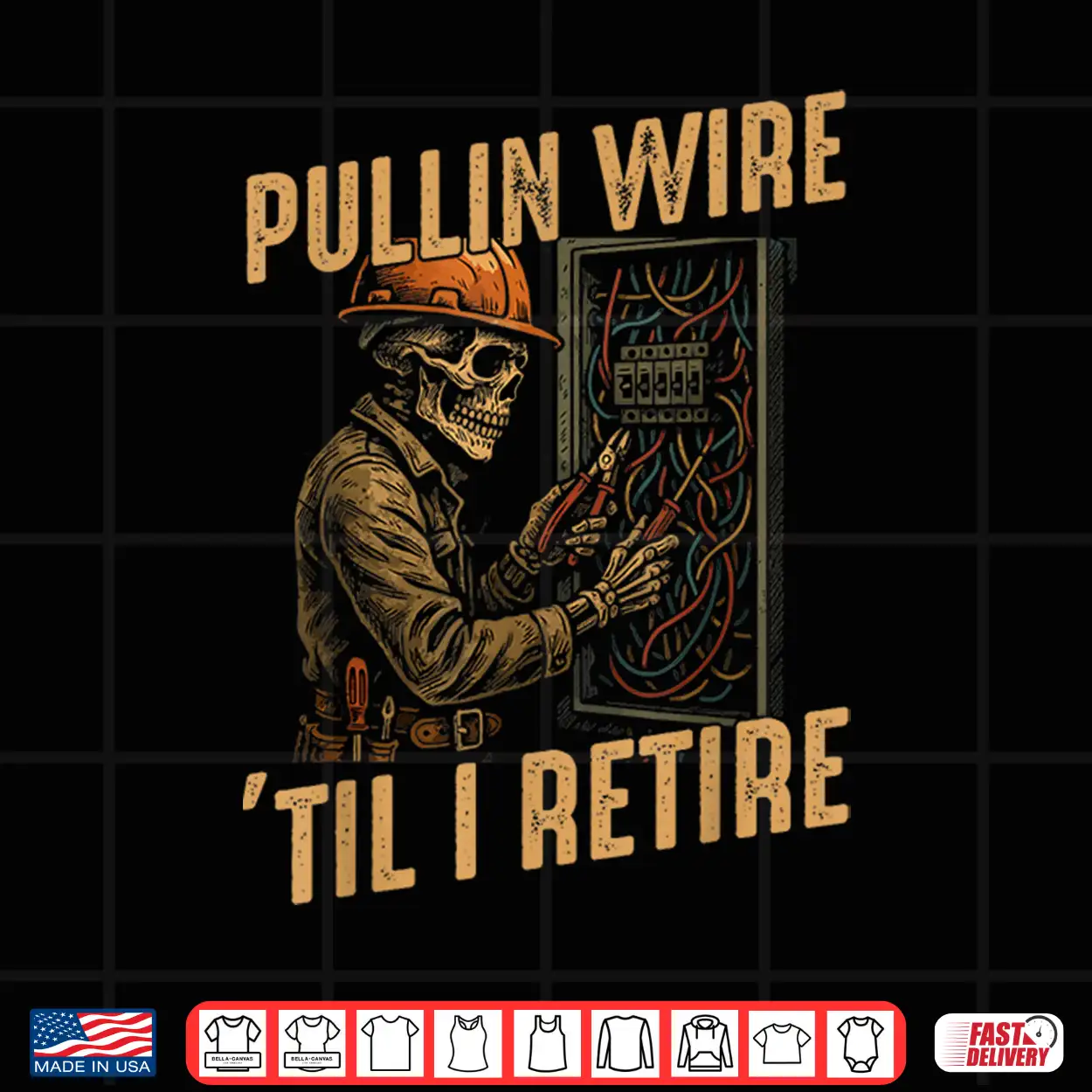 Pullin Wire Til I Retire Funny Electrician Skeleton Shirt