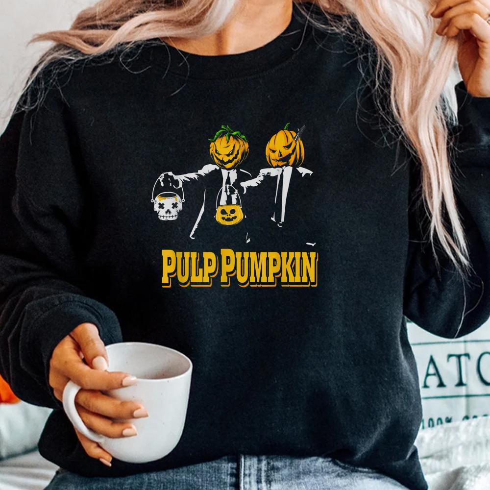 Pulp Pumpkin Movie Parody Scary Orange Halloween Hallowtine Shirt, hoodie, sweatshirt, long sleeve and ladies T-shirt