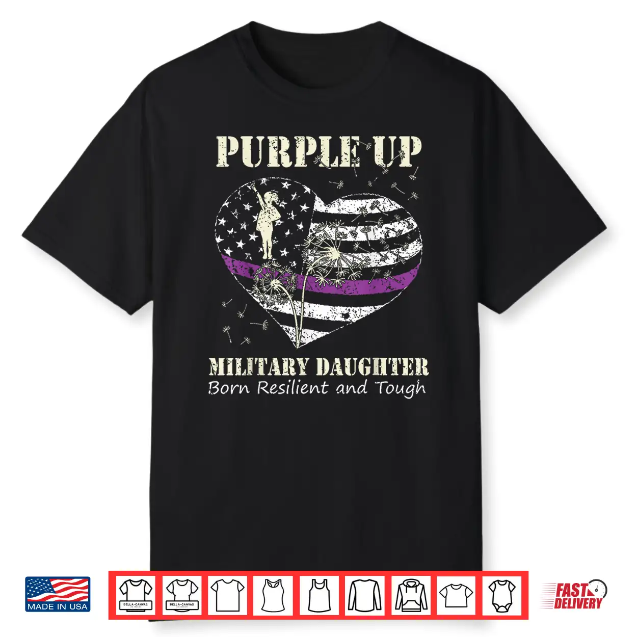 Purple Up Military Child Daughter Dandelion For Girls Shirt
