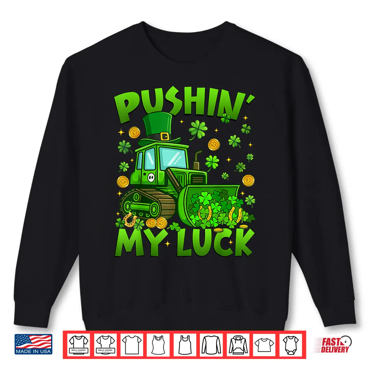 Pushing My Luck Tractor St Patricks Day Boys Toddler Kids Shirt