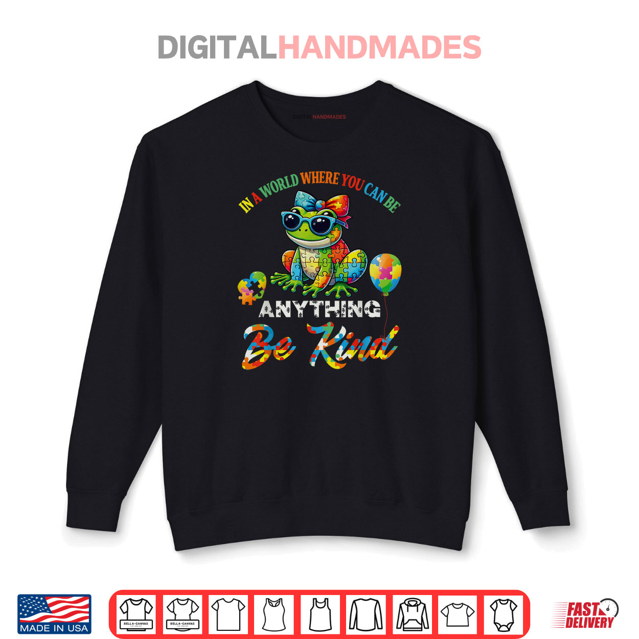 Puzzle Pieces Frog In A World You Can Be Anything Be Kind Shirt