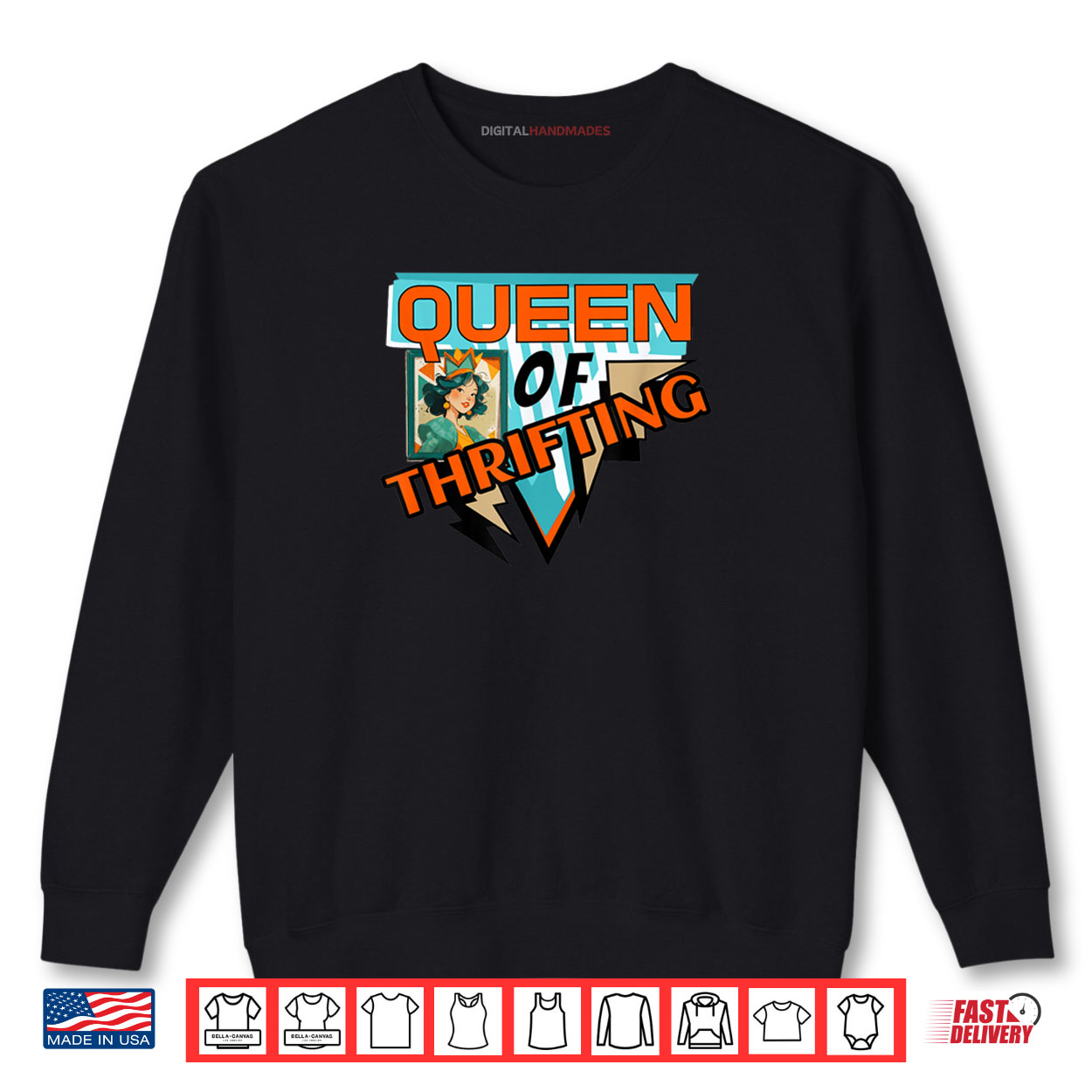 Queen of Thrifting, Vintage, Thrift, Retro, Shopping, Funny, Sarcastic, Witty, Pop Culture, Fashion