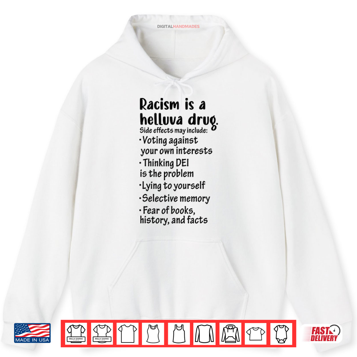 Racism Is A Helluva Drug Shirt, Anti Racism Social Justice Tee Shirt, End Racism Statement Slogan Art Shirt, Black Lives Matter Ally Gift Merch Shirt, Equality And Justice For All Quote Shirt, Funny But Serious Anti Bigotry Shirt, Rick James Parody Social Commentary Shirt, Social Justice Warrior Fight Racism Shirt, Fight Prejudice And Discrimination Shirt, Racial Awareness Activist Apparel Shirt