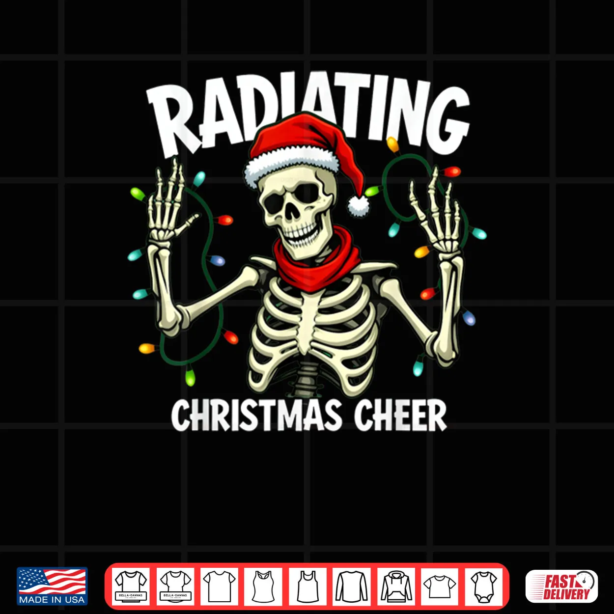 radiating christmas cheer, skeleton lights, xray tee, funny christmas, medical humor, skeleton graphic, holiday radiology, xray tech, unique design, festive