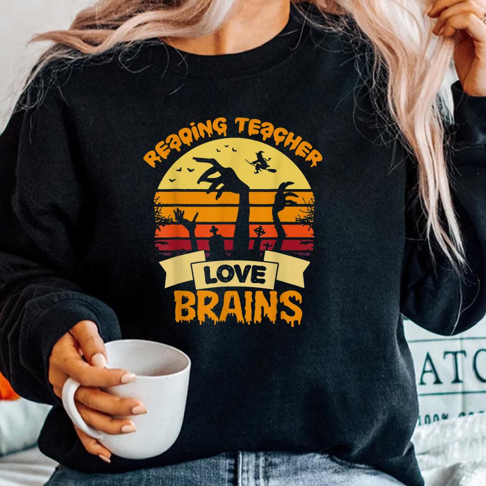Reading Teachers Love Brains Zombie Teacher School Halloween Shirt