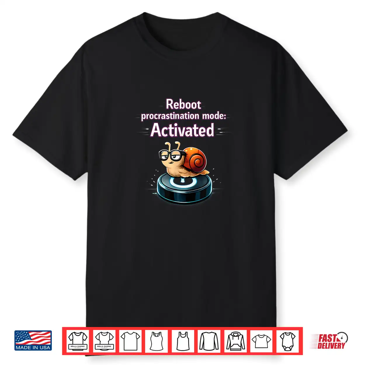 Reboot Procrastination Mode Activated Snail Tech Humor Shirt
