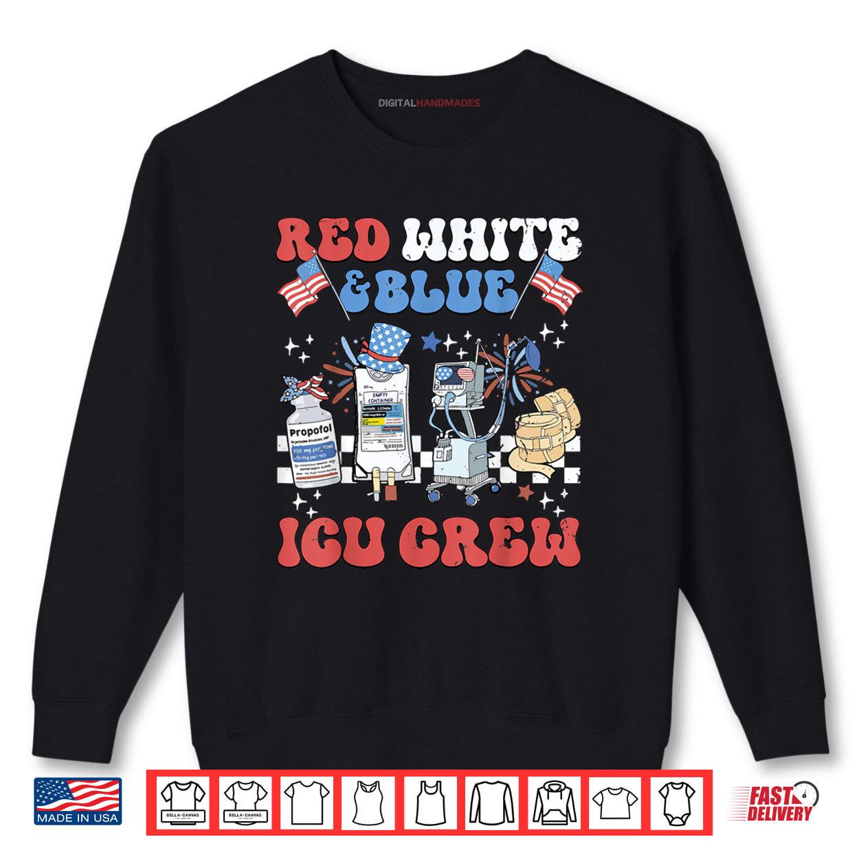 Red White & Blue ICU Crew American Nurse Fourth 4Th Of July Shirt