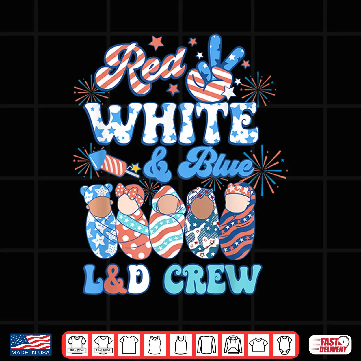 Red White Blue, L&D Crew, USA, Healthcare, 4th of July, Nursing, Celebration, Patriotic, Summer, Labor Delivery