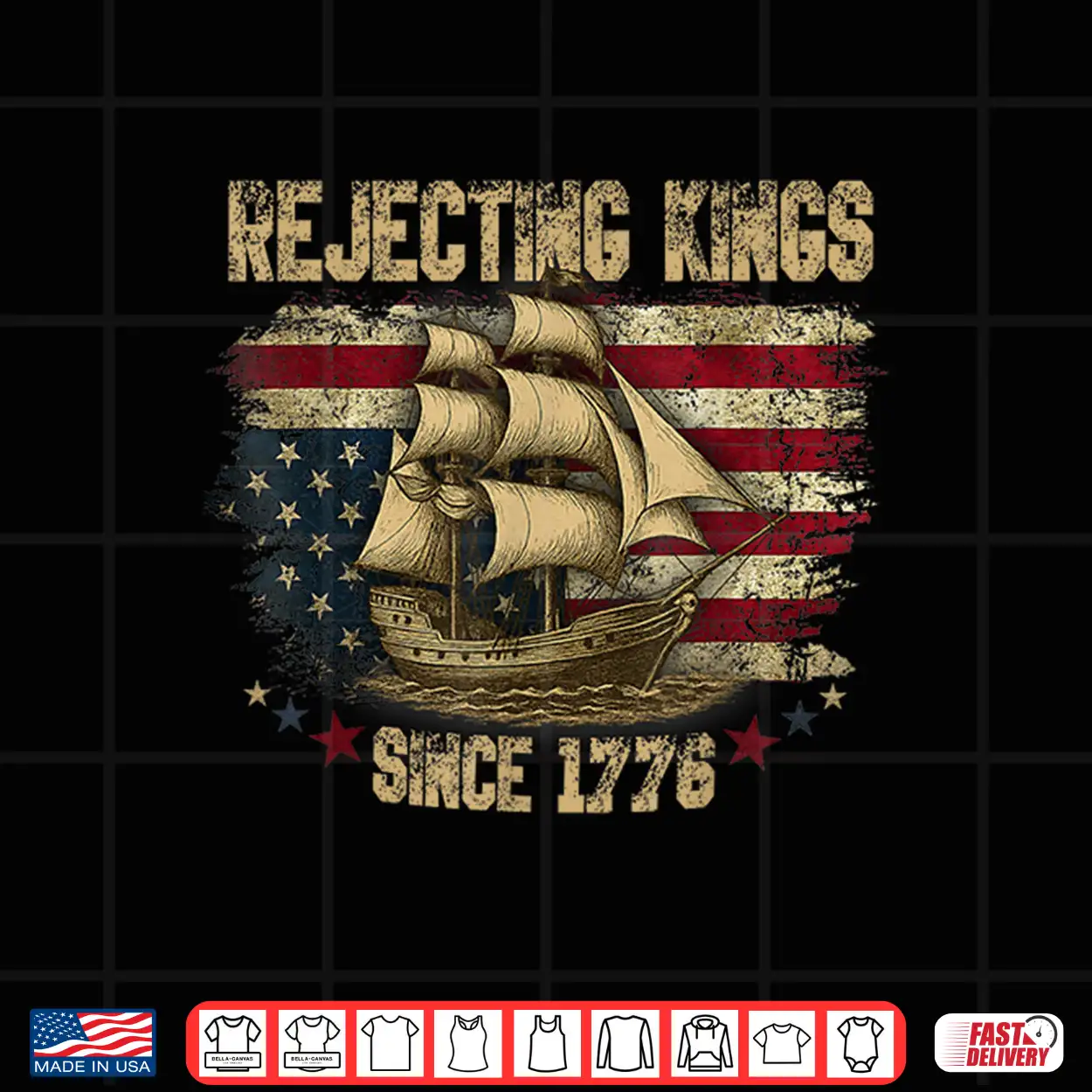 Rejecting Kings Since 1776 Liberty Patriotic Usa Sailboat Shirt