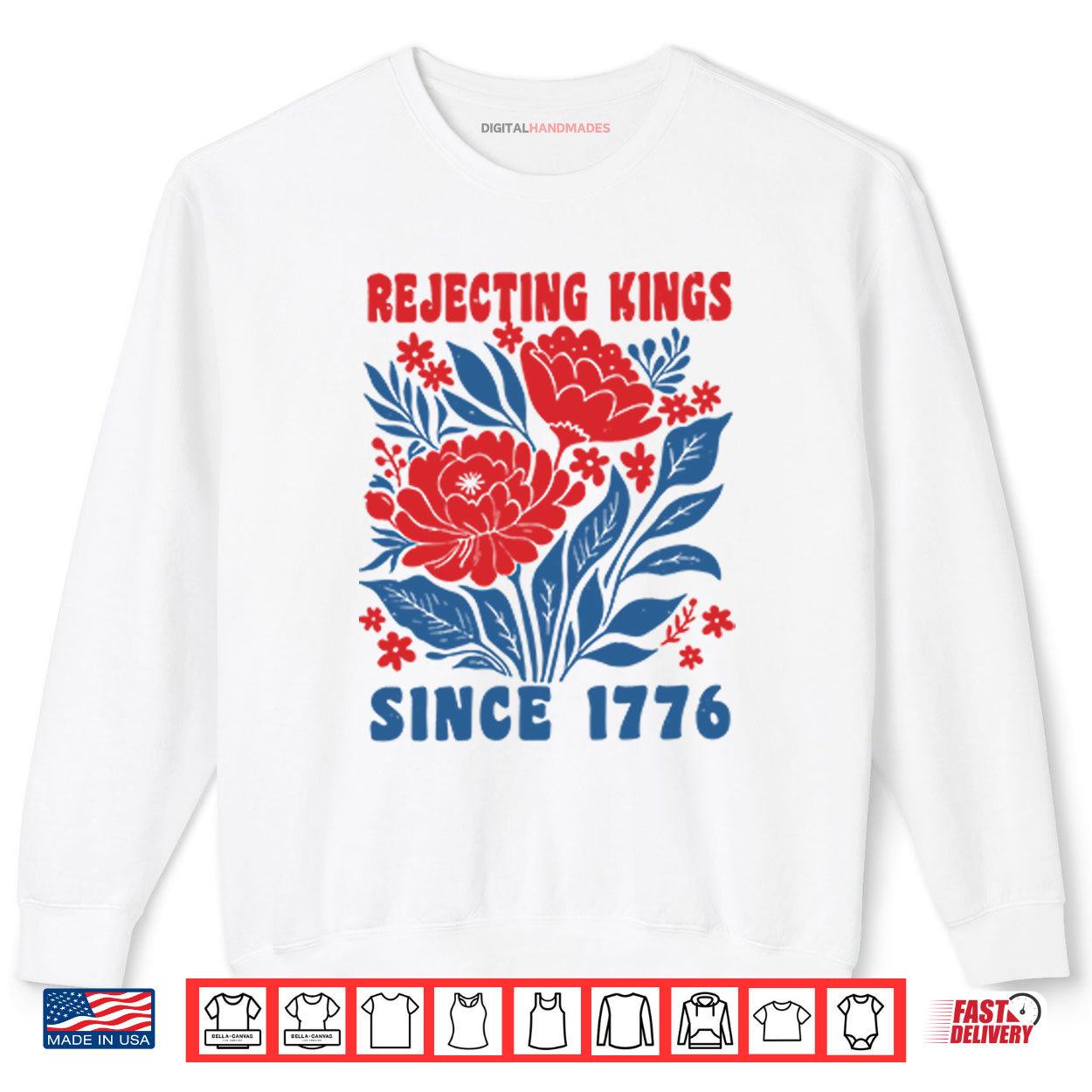 Rejecting Kings Since 1776 Shirt, Funny Rejecting Kings Since 1776 Tee Shirt, Patriotic USA Anti Monarchy Slogan Gift Shirt, 4th Of July Independence Day Apparel Shirt, American Revolution Heritage And Pride Shirt, We The People Against Tyranny Style Shirt, Founding Fathers Principles Fun Quote Shirt, No Kings In America Just Freedom Shirt, Liberty And Democracy For All Shirt, Historical And Patriotic Statement Shirt