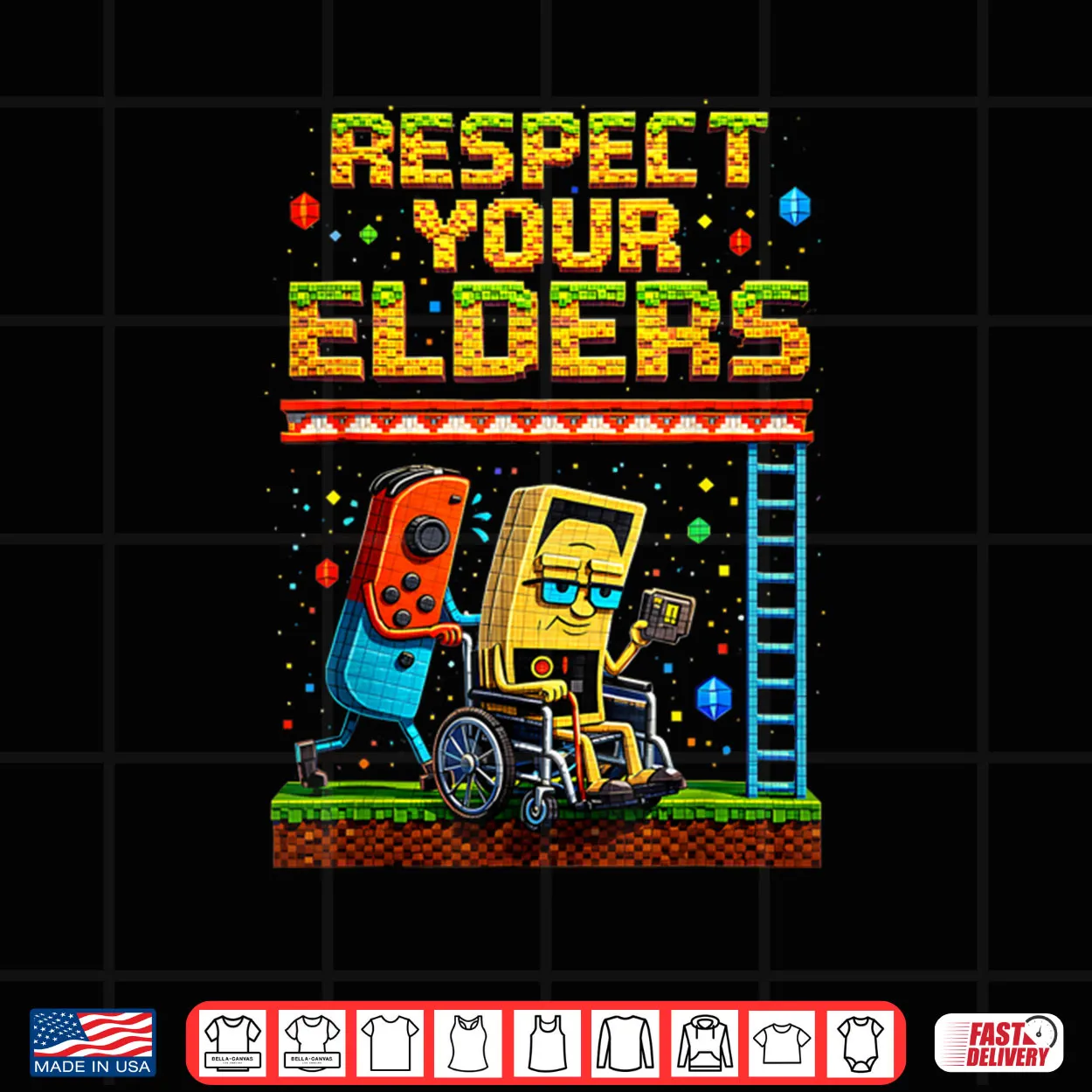 respect your elders, gaming controller, vintage gaming, retro, 80s, 90s, nostalgia, geek, gamer life, shirt