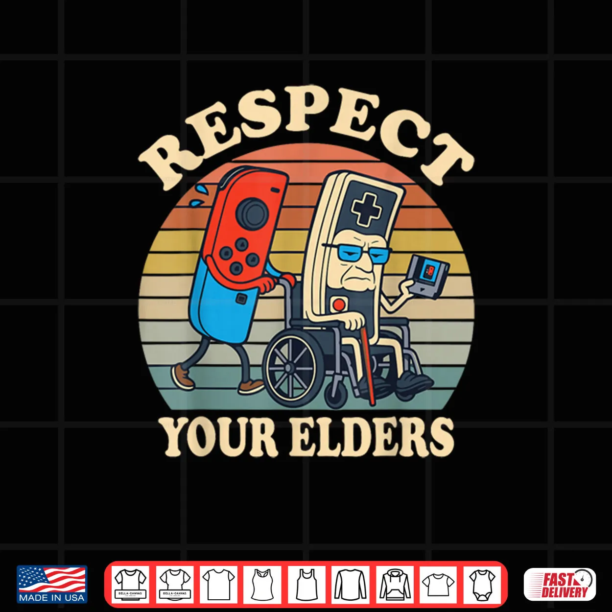 respect your elders, retro gaming, funny controller, 80s, video games, nostalgia, geek, old school, gamer, shirt