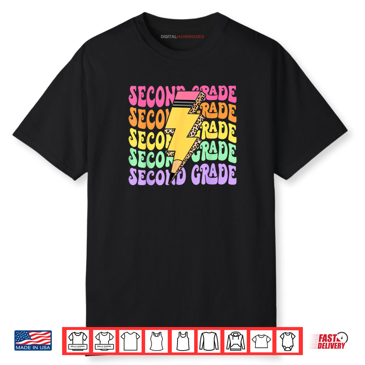Retro 2nd Grade Lightning Bolt Pencil Teacher Student Shirt