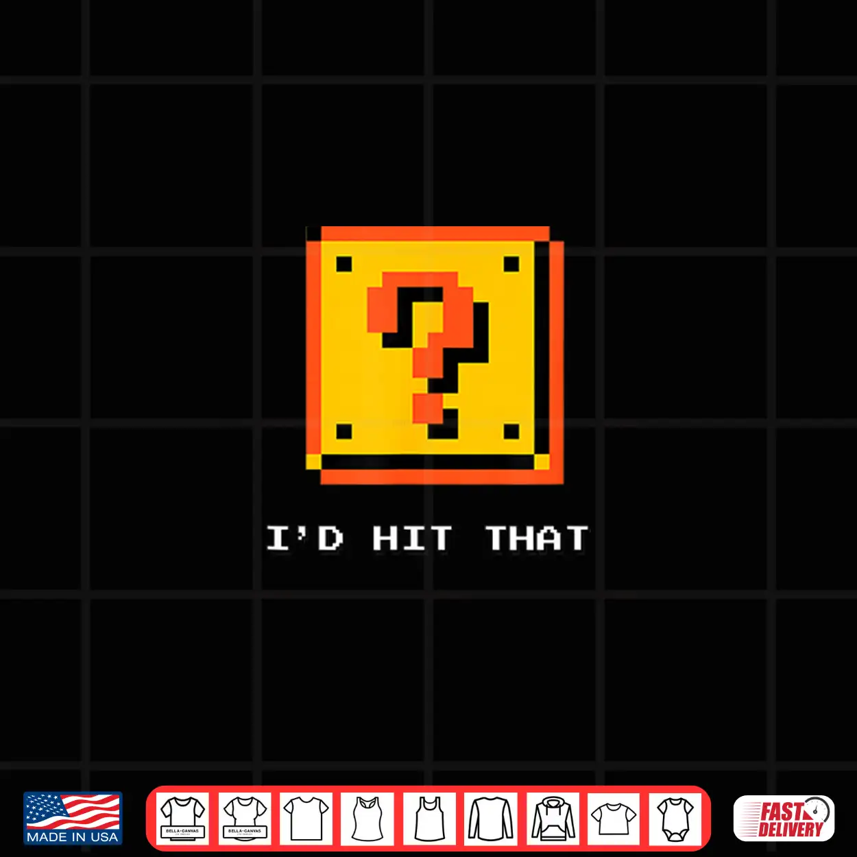 shirt, I’D Hit That, Question Block, 8-Bit Pixel Block, Gamer