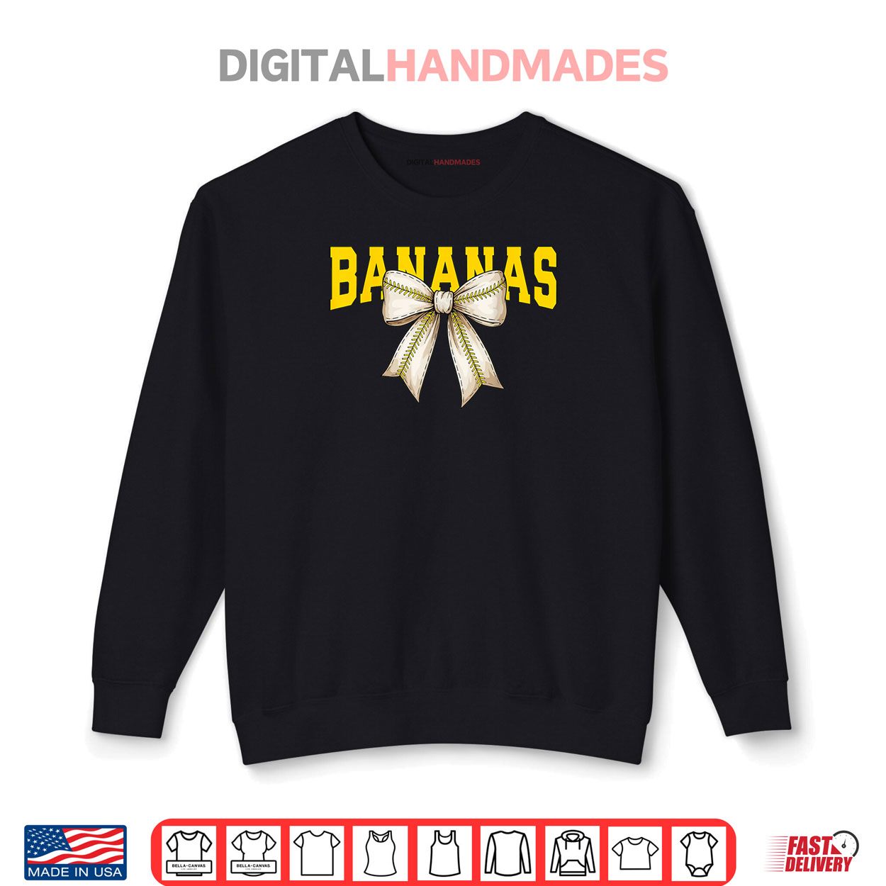 Retro Banana Coquette Bow Shirt, Coquette Bow Retro Banana Tee Shirt, Vintage Fruit Fashion With Bow Shirt, Cute Banana Graphic Coquette Style Shirt, Girly Retro Aesthetic Apparel Gift Shirt, Playful Fruit Print Bow Detail Shirt, Nostalgic Coquette Trend Banana Shirt, Sweet Banana Design For Her Shirt, Feminine Retro Fruit Fashion Shirt, Whimsical Bow And Banana Shirt