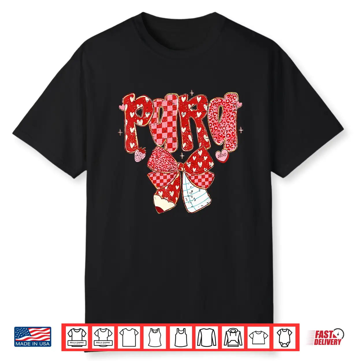 Pencil, Para Teacher, shirt, Valentine, Coquette Bow, Retro Checkered Para