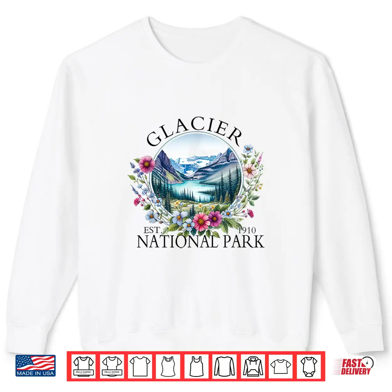 Retro Floral Glacier National Park Hiking Camping Outdoor Shirt