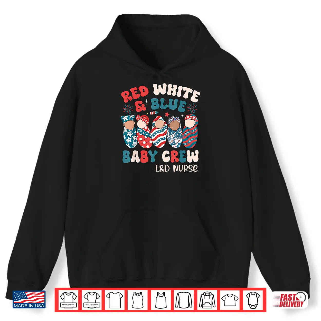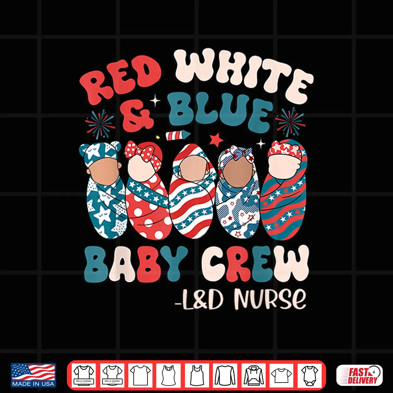 USA, Healthcare, Baby Crew, 4th of July, Nursing, Celebration, Retro, Patriotic, Summer, L&D Nurse, Groovy