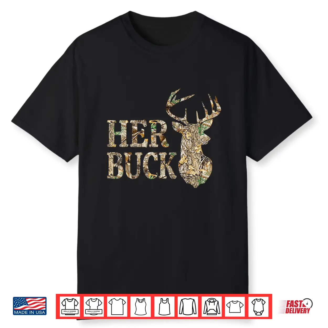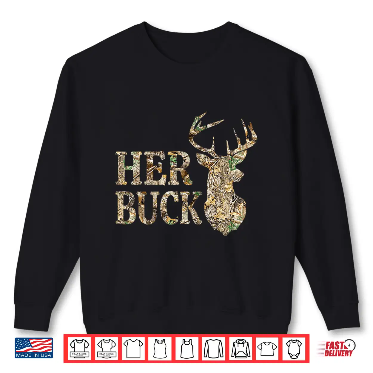Retro Her Buck Camo Deer Hunting Camouflage Matching Couple Shirt