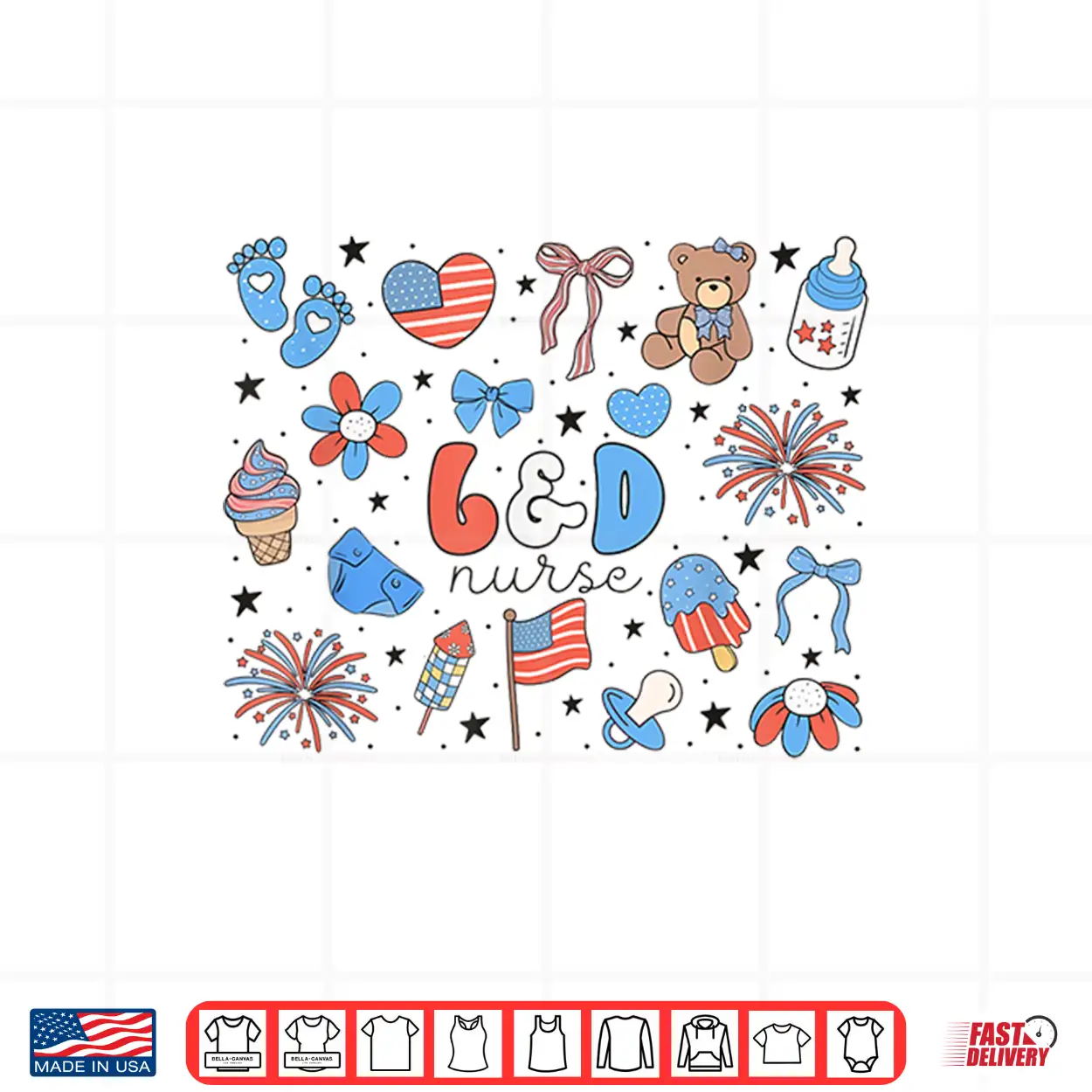 Retro Labor And Delivery Nurse Bear 4Th Of July L&D Nurse Shirt